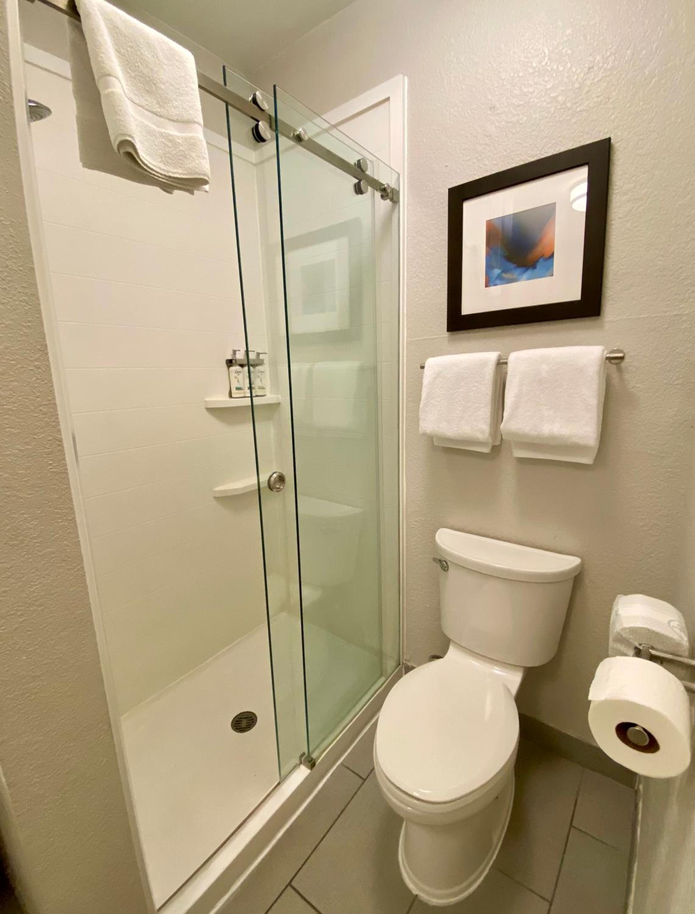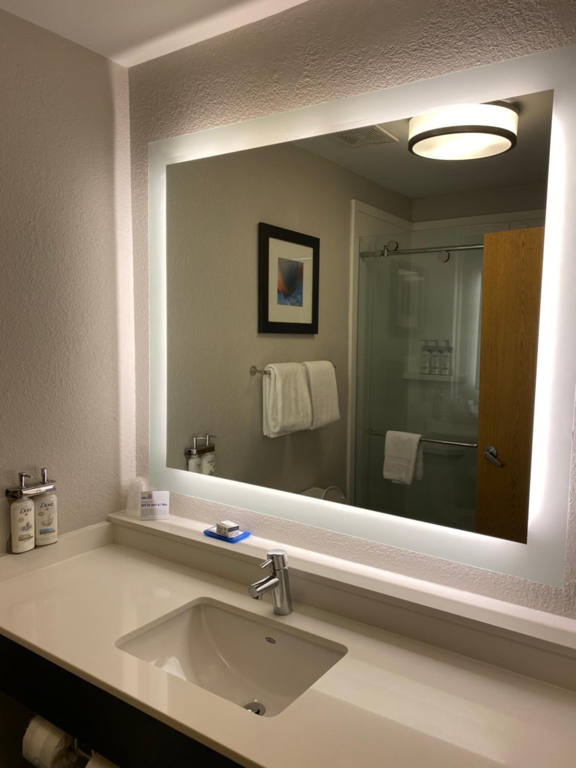Small bathroom and gave us only 2 towels, 2 washcloths,.and.2 hand towels.