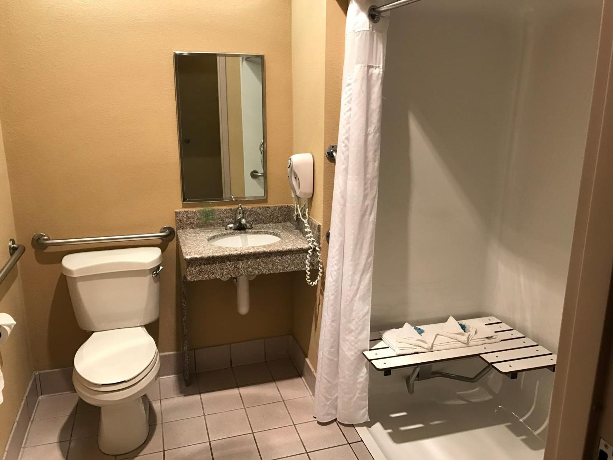 Exceptionally noisy room. Bathroom fan ran all night. AC / Heat was very loud and squealed every time it kicked it. Hallways and elevator were less than clean.