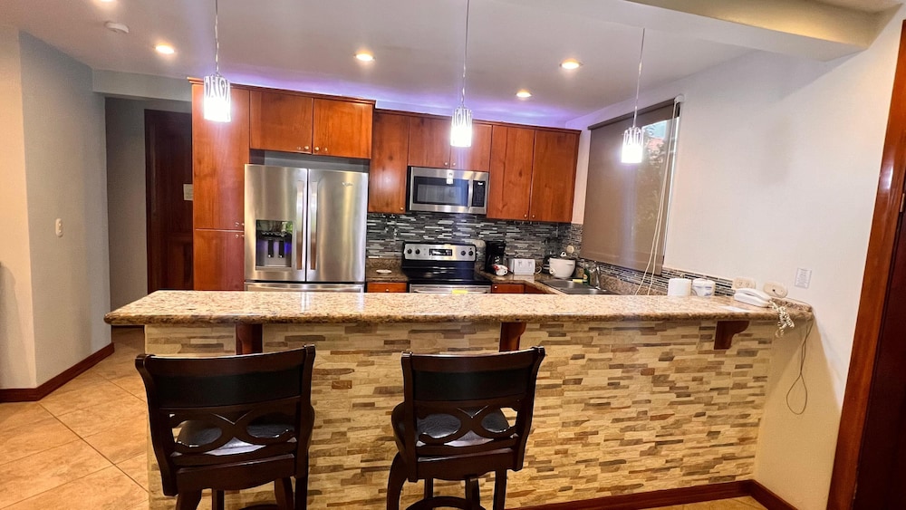 Very nice and well maintained apartment with great location to down town Jaco. My family enjoyed spacious apartment and the pool. The only fault we could find was the crockery and cutlery needs upgrading. We would stay here again.
