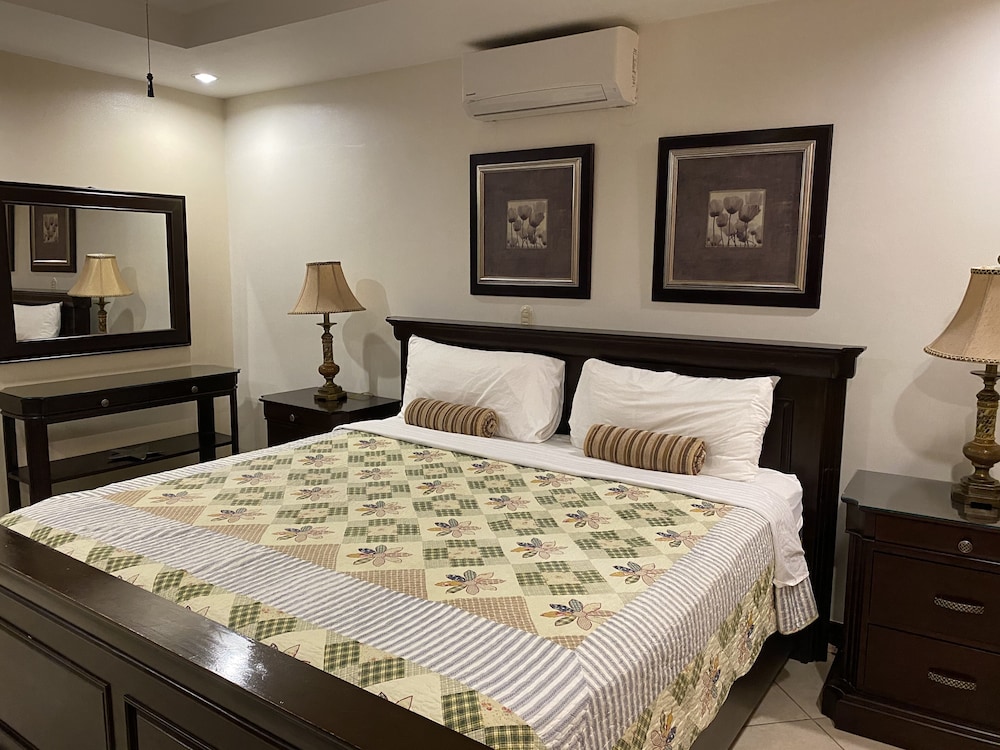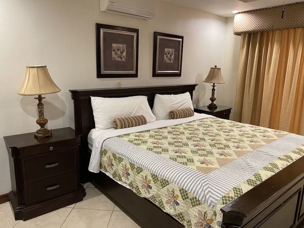 The best part about my stay at these condominium was the security guard Nelson, he was always pleasant, a smile on his face and a good attitude. The outside it's also very beautiful well maintained however for apartment 1, the master bathroom the water was always cold as informed to me by my travel companions, the other bathroom with the tub was hot and cold, it would get extremely hot then cold, there was a travel size shampoo on the bathroom with the tub but that's about it. The pool looked beautiful but the jacuzzi is not heated. And as for cleanliness i don't think it's throughly cleaned, there was crumb like stuff on the bed frames, decided not to look too much into it fearing the worse