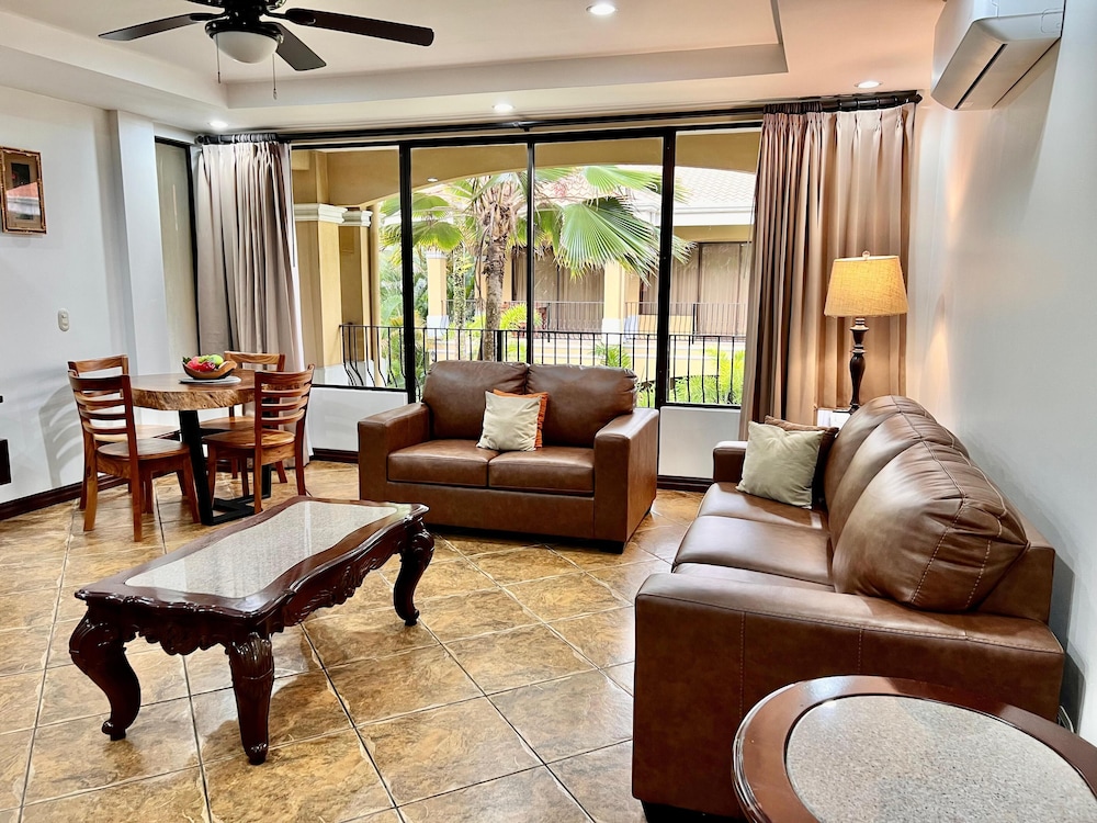 ABSOLUTELY GORGEOUS PROPERTY! This was a beautiful, well kept condominium with security at the gate to welcome you in. Nelson the security at the gate was very helpful with luggage and giving great recommendations for first timers in Costa Rica! He showed us around and helped with questions about the property. The pool and common areas are clean, well kept and regularly maintained. The rooms inside were spacious, clean, and had chairs inside if going to the beach!