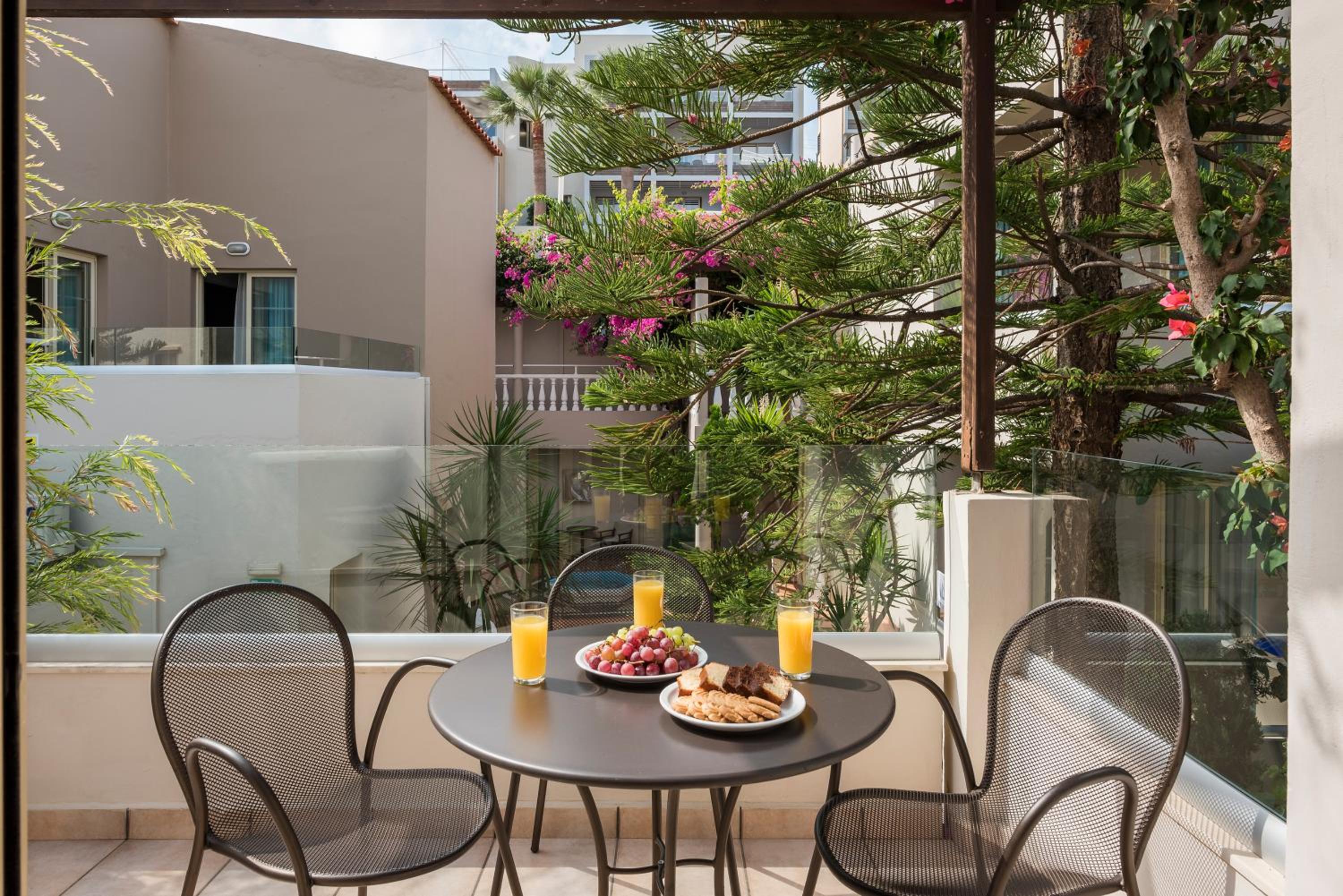 Room was spacious and clean. Room was cleaned with fresh towels every day. Staff were friendly and let us shower and have us a towel after we had checked out. Property was right by the beach plus lots of restaurants and shops. Easy £18 taxi ride into chania town.