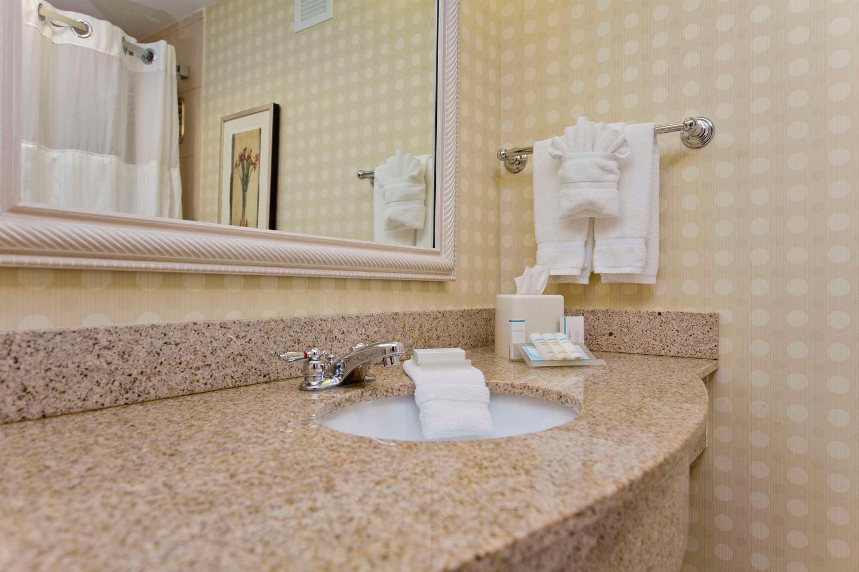 Guests can enjoy the indoor pool, fitness room, 24-hour convenience store, and laundry facilities during their stay at the Winchester Hilton Garden Inn.