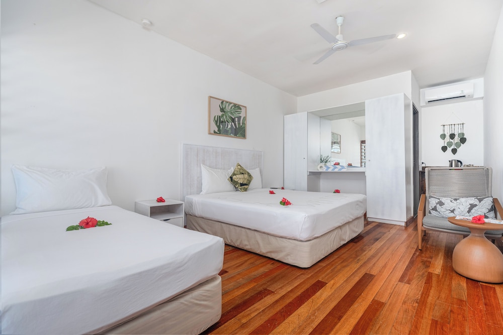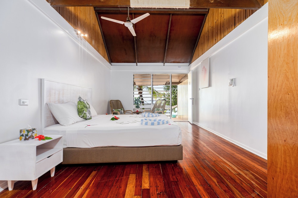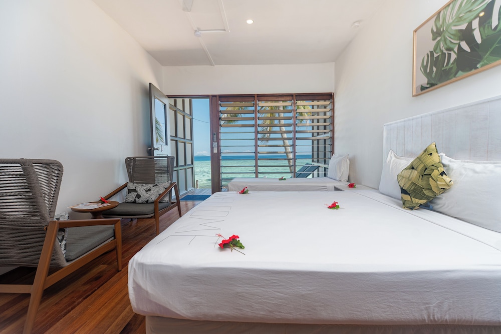 The Oceanfront Family Bure with a hammock between your Bure and the ocean, beautiful touch. Our family of four had plenty of room to sleep comfortably. Enjoy snorkeling, kayaking, paddle boarding, mini golf, karaoke, or just bathing in the sun. Enjoy the experience as a day trip or stay over night and feel connected with other guests and the staff. The passion from the traditional Fijian songs to the Sunday evening church option makes this tiny island a unique experience. You can't help but enjoy your time there. It's the first place where I never opened my work laptop nor thought about working. VINAKA!