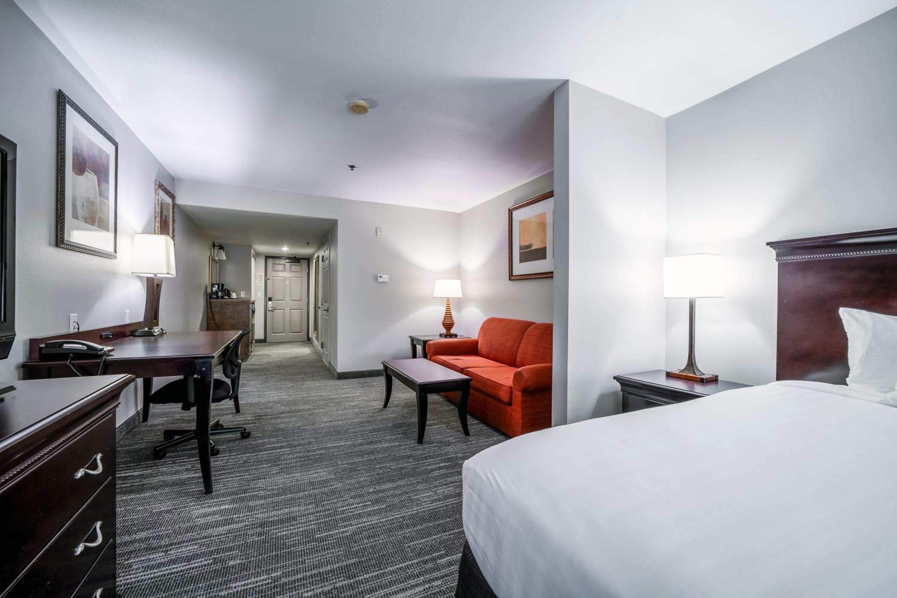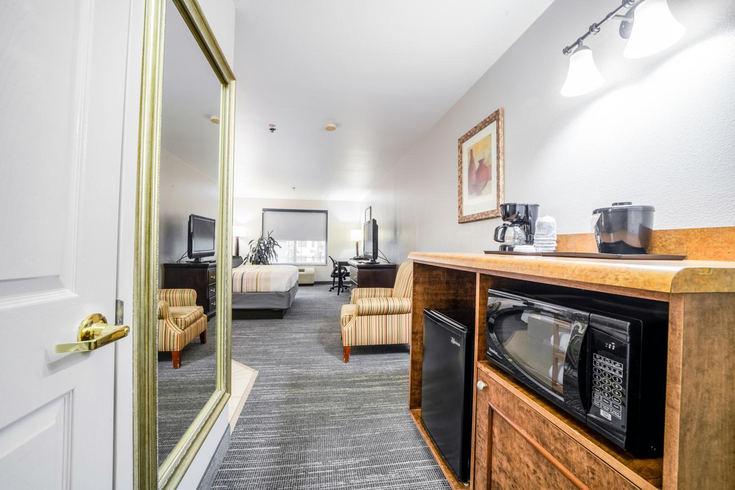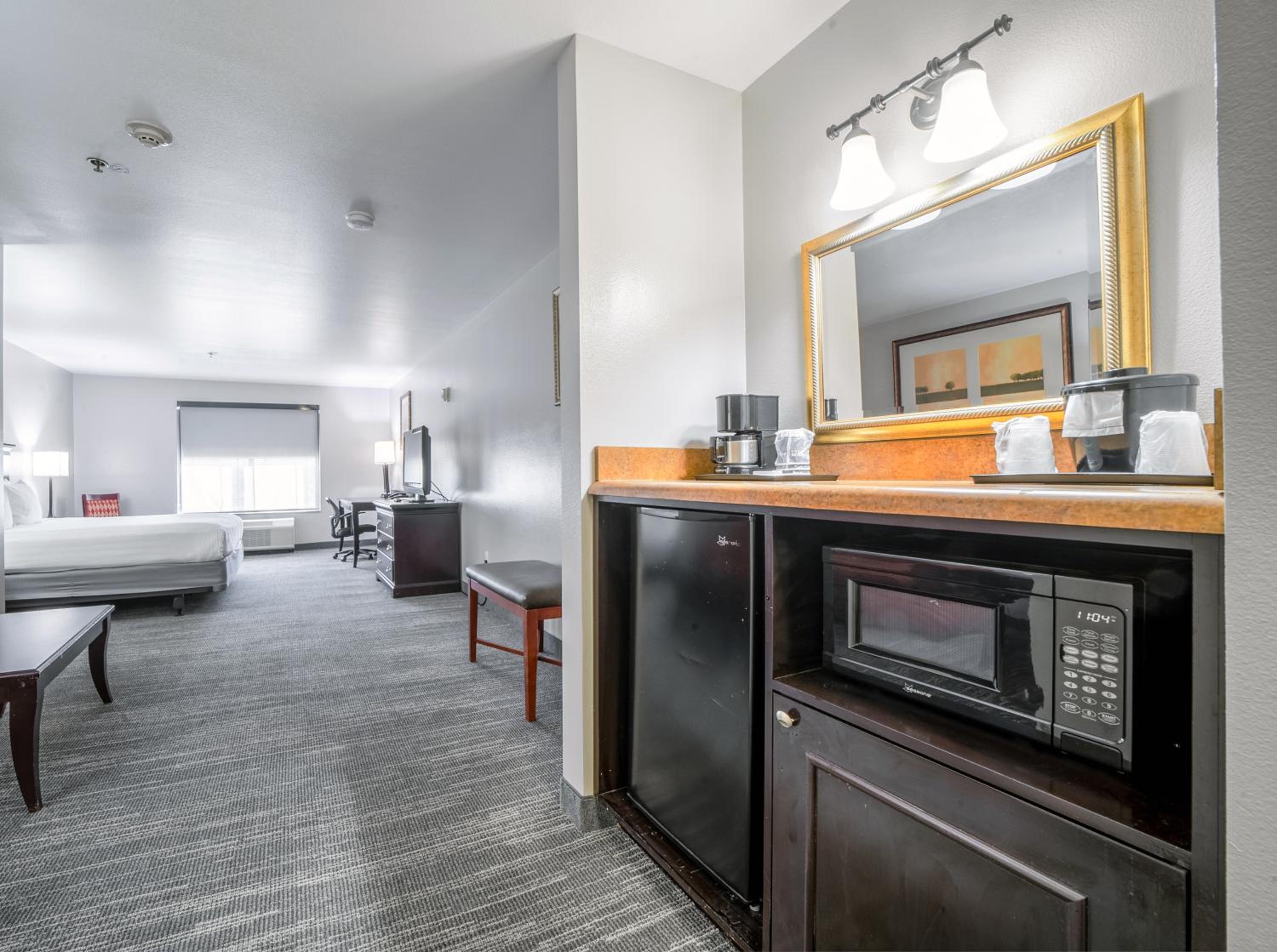 Guest rooms feature modern amenities such as free Wi-Fi, flat-screen TVs, work desks, microwaves, fridges, and coffee makers. Enjoy the outdoor pool and start your day with a complimentary grab-n-go breakfast.