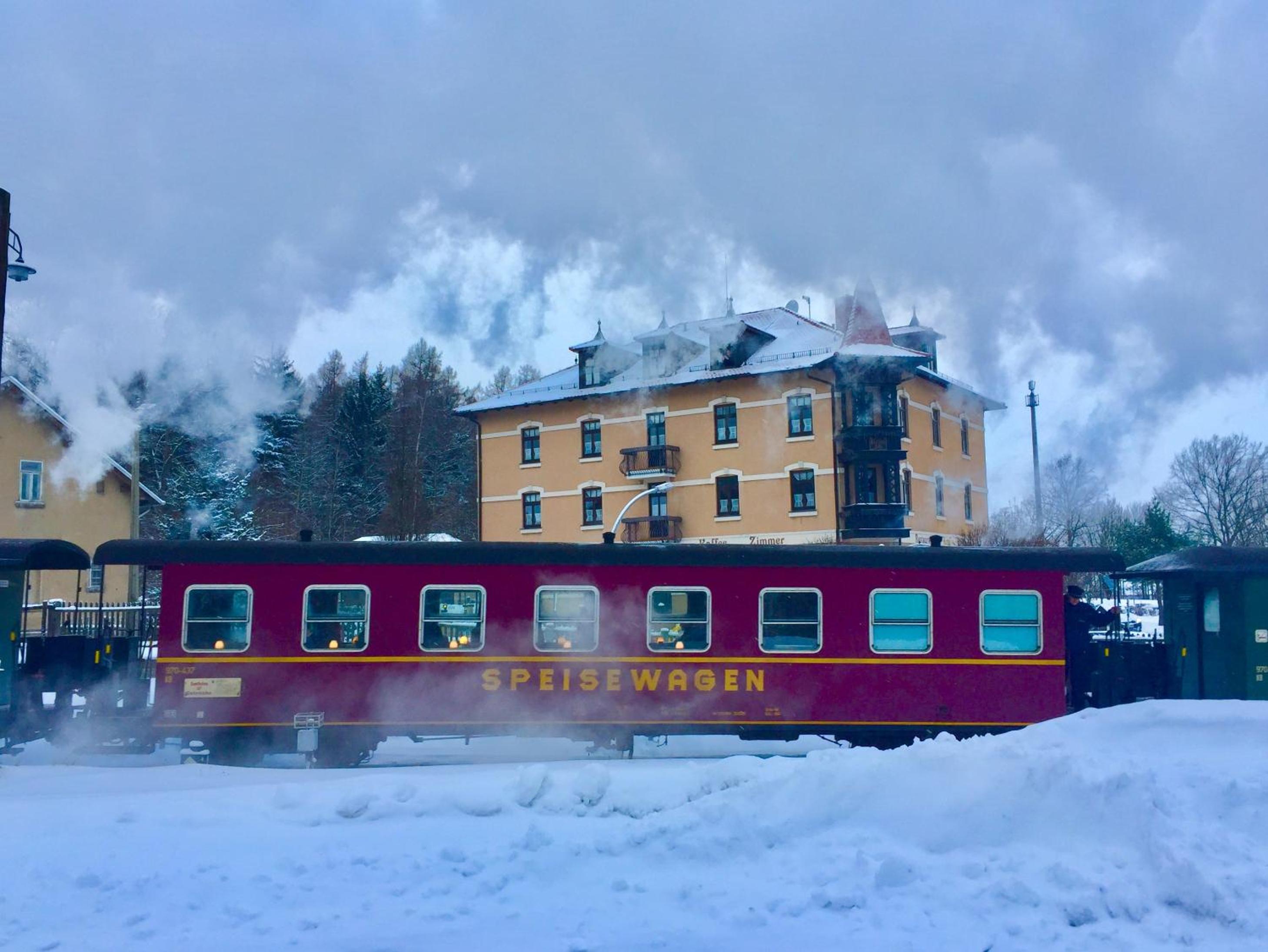 Bis zum Bahnhof sind es nur ein paar Gehminuten. Vom Hotelbalkon konnten wir die Dampfzüge der Zittauer Schmalspurbahn beobachten. Für Eisenbahnfreunde besonders zu empfehlen.
