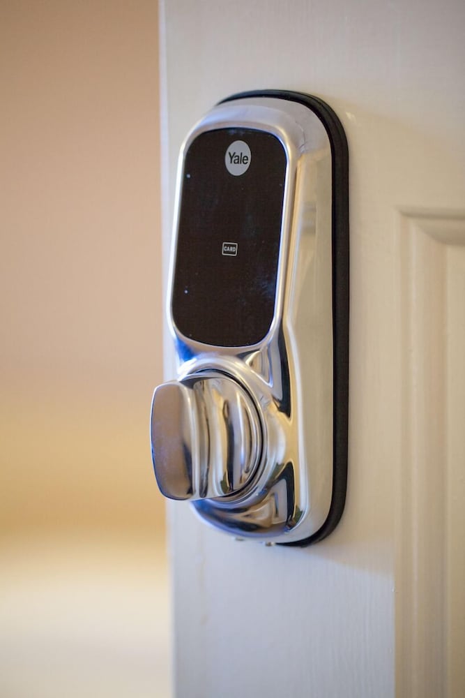 Room entry keypad is painfully loud — you hear every guest entering their room with 7 beeps every time.