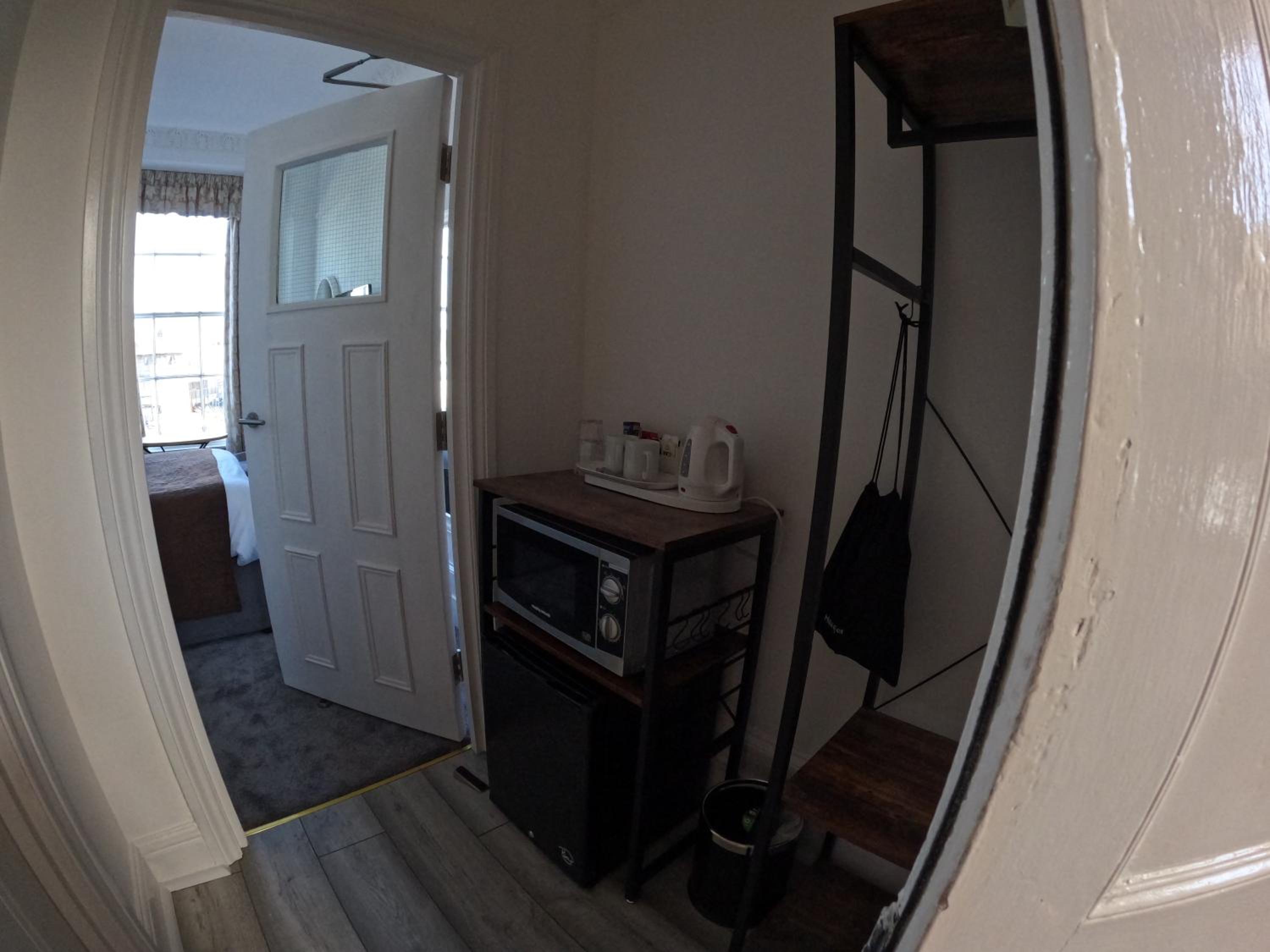 Ref kjøleskap og mikro: synd det ikke var en kniv eller en gaffel når de først ikke tilbyr frokost men mikro. Smurte brødskiver med teskje🤣