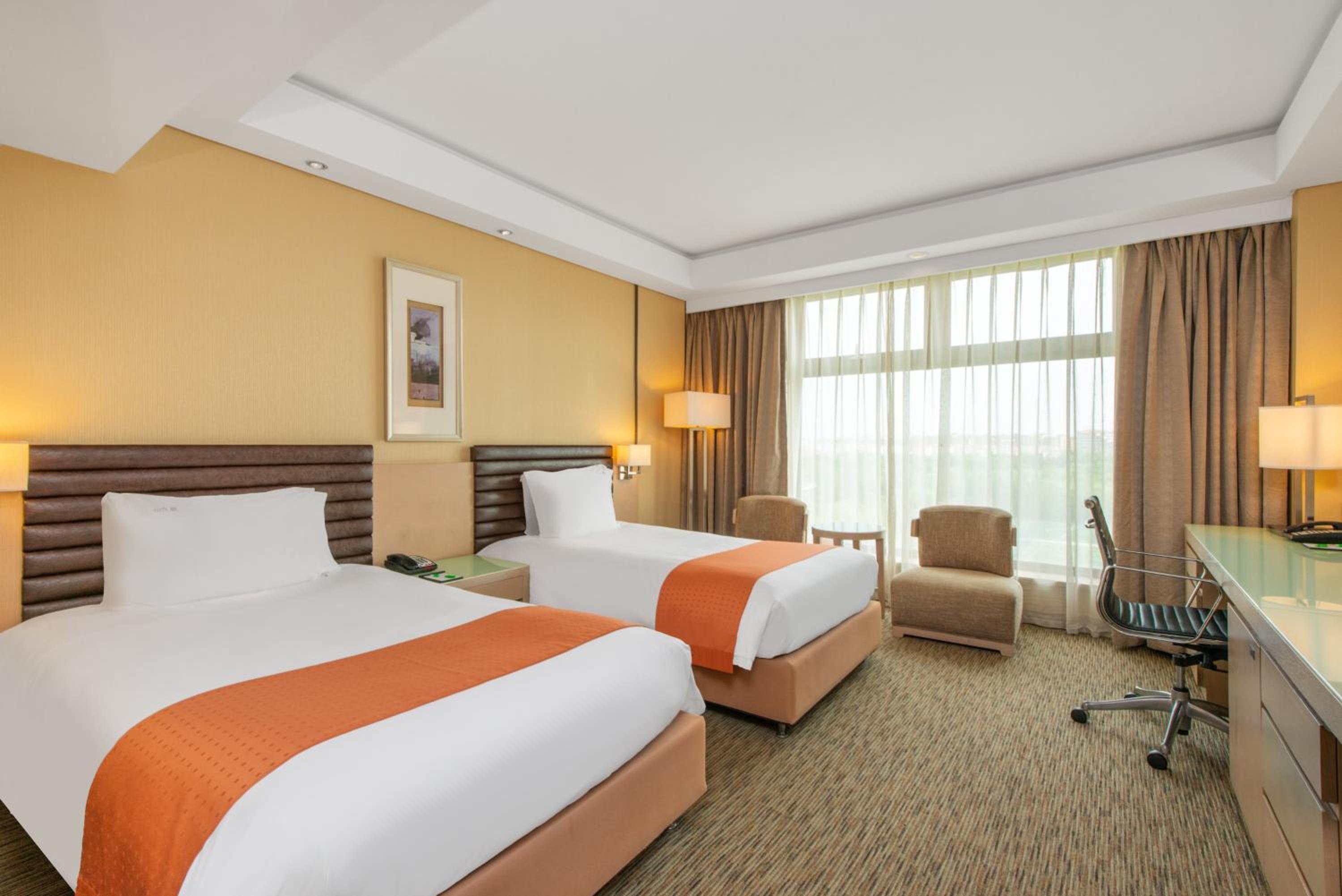 Guests can enjoy the hotel's 3 restaurants, large indoor pool, fitness centre, and beauty salon. Each modern room features a flat-screen TV, tea/coffee facilities, and a cozy sitting area by the window.