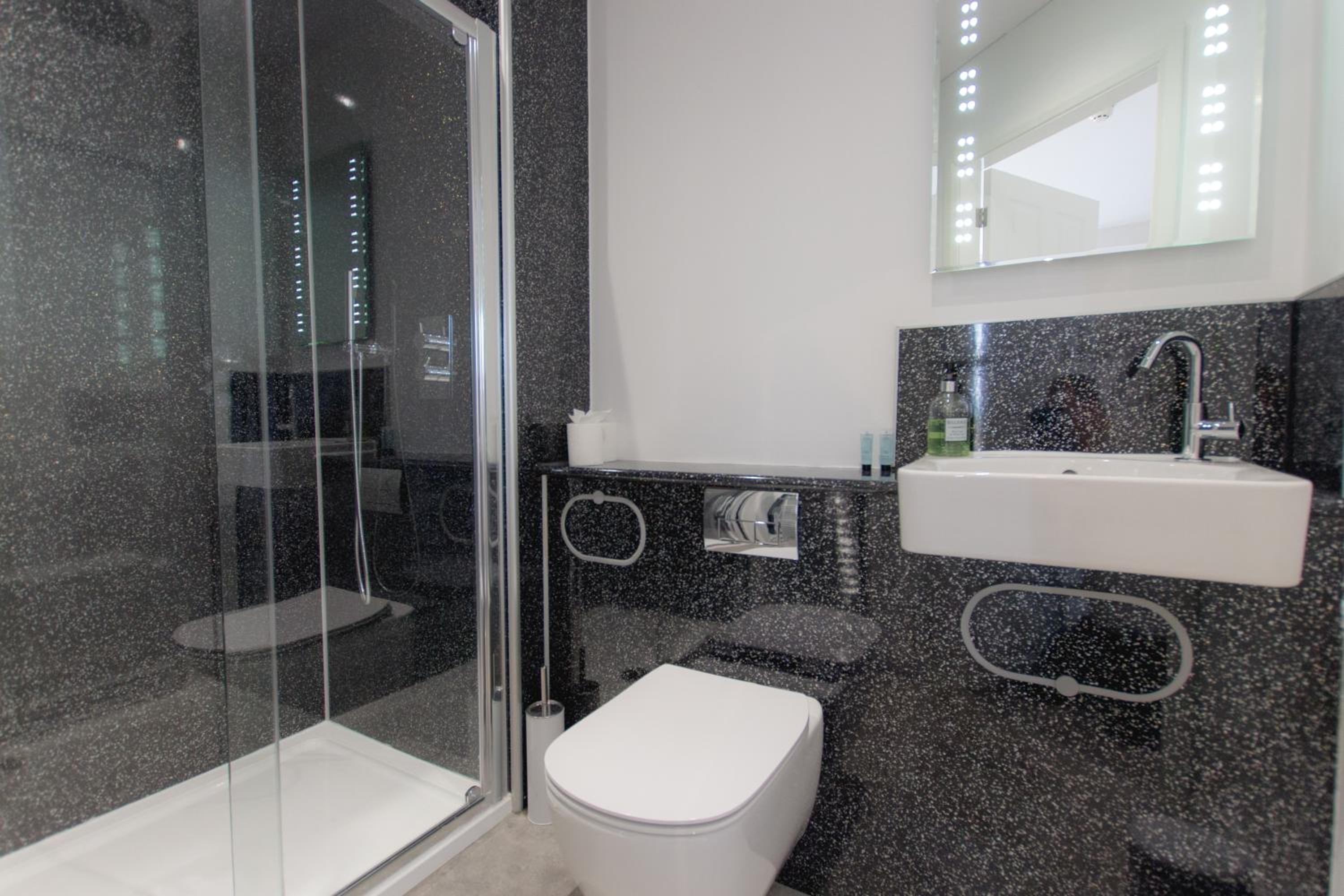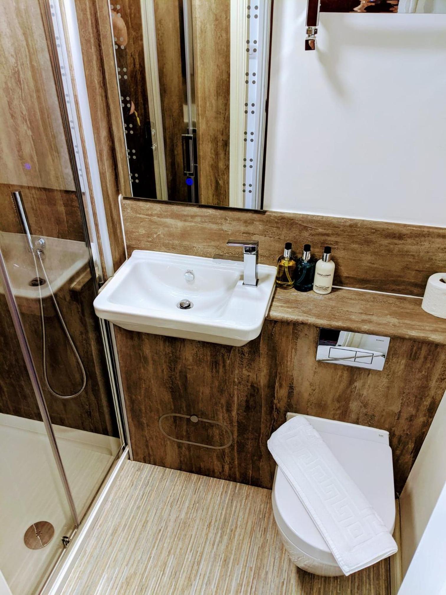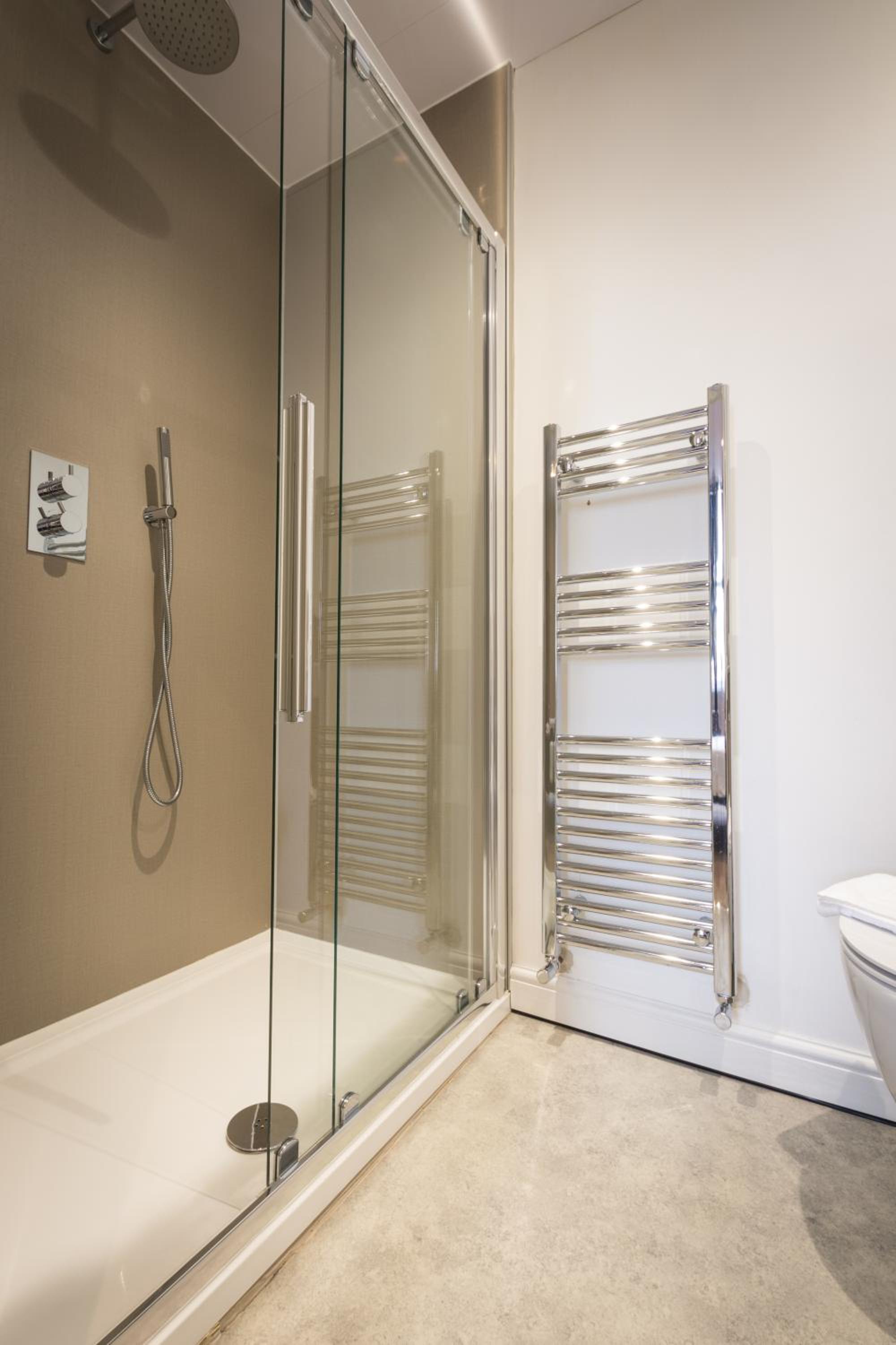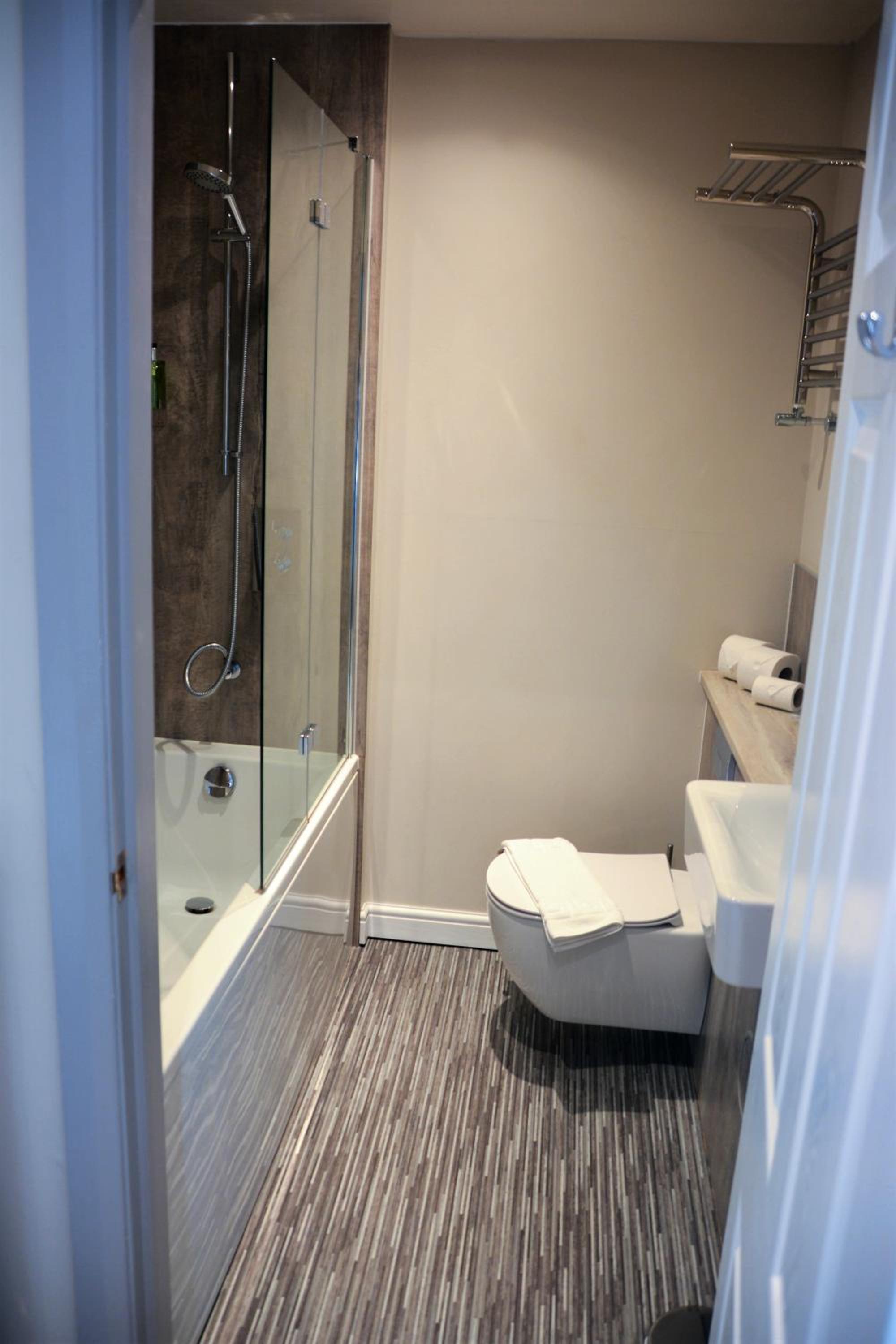 Bathroom very good but small shelf in shower would help as would a grab rail as an aid for older clients.