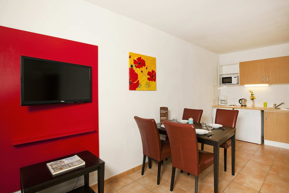 Easy walking to Carcassonne Citee. Superior family apartment was very spacious and adequate for a stay of a few days although it did feel slightly tired in appearance. Excellent welcome from the staff.