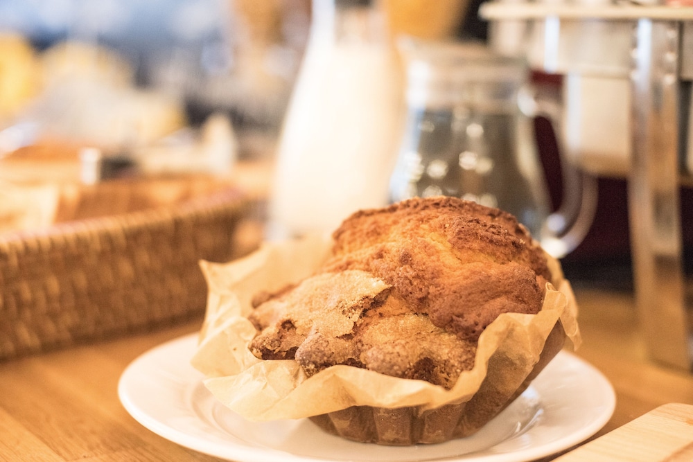 The breakfast (extra cost) was reasonable - better as a Continental rather than the cooked variety. Dining in room would be possible with basic facilities (microwave, fridge, hotplate) with cutlery, crockery and a few pans provided. The hotel is on the edge of town with a pattiserie and grocery stall about 15 minutes walk along a busy road.