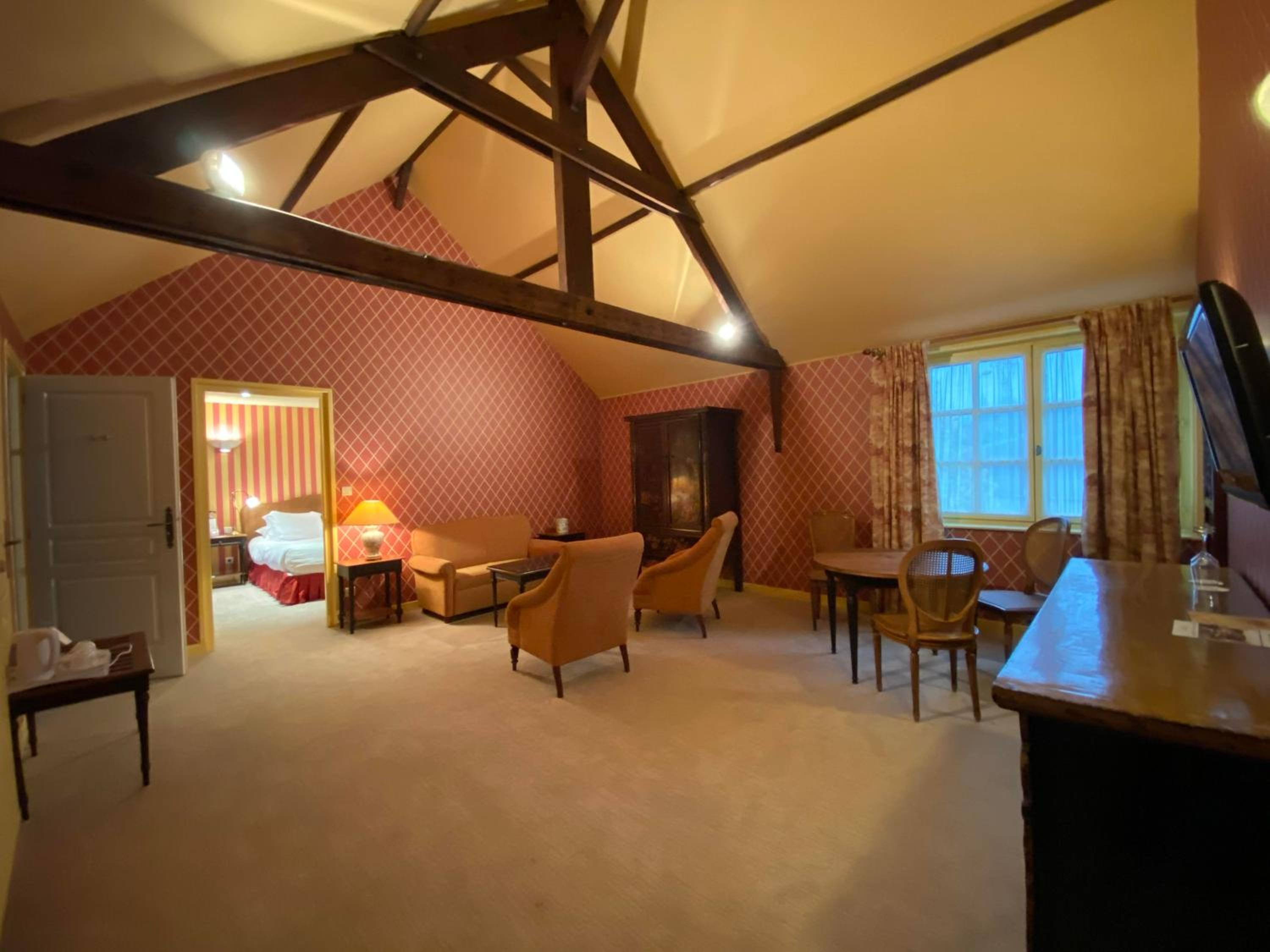 We have stayed many times at this hotel on our way home from the Alps as only an hours drive from Le Shuttle. We have usually booked the Prestige room which is very spacious and clean with parking out side the door. There are 2 restaurants available both with a good choice of food. This time we ate in Le Distillarie where the food was tasty, cooked well and the staff were pleasant.