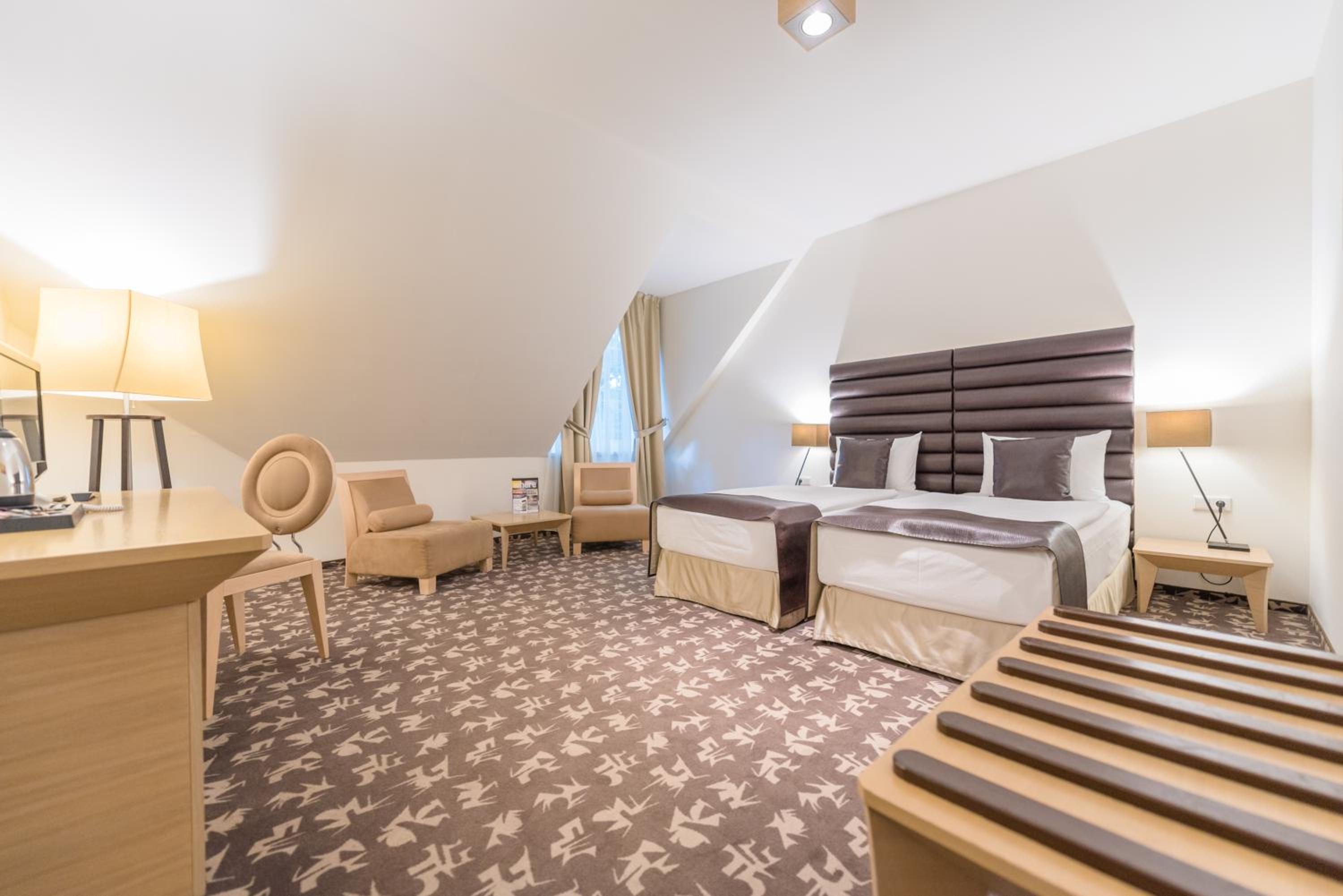Experience comfort and style at Buda Castle Hotel Budapest, offering air-conditioned rooms with modern amenities including flat-screen TVs and minibars.
