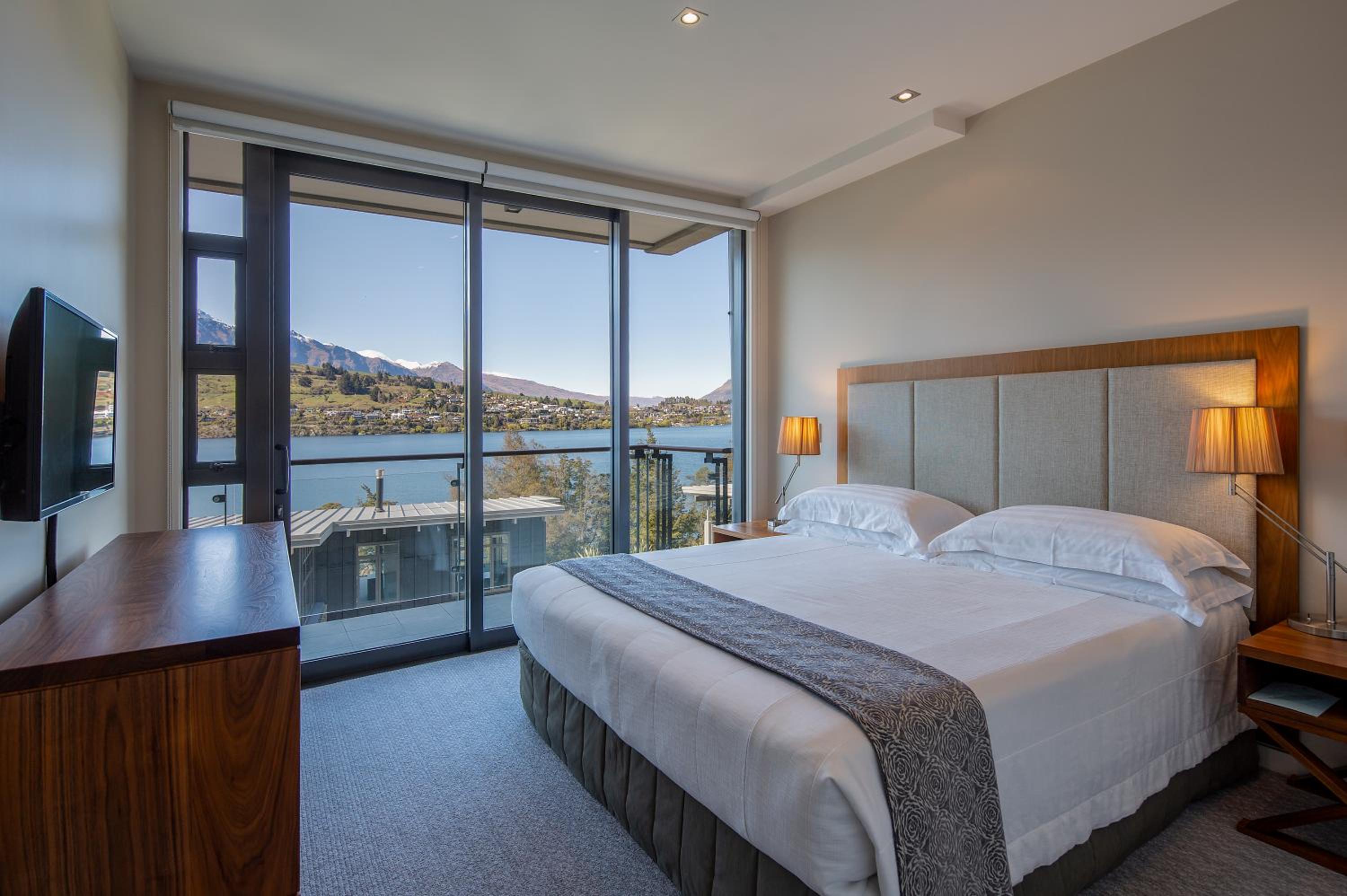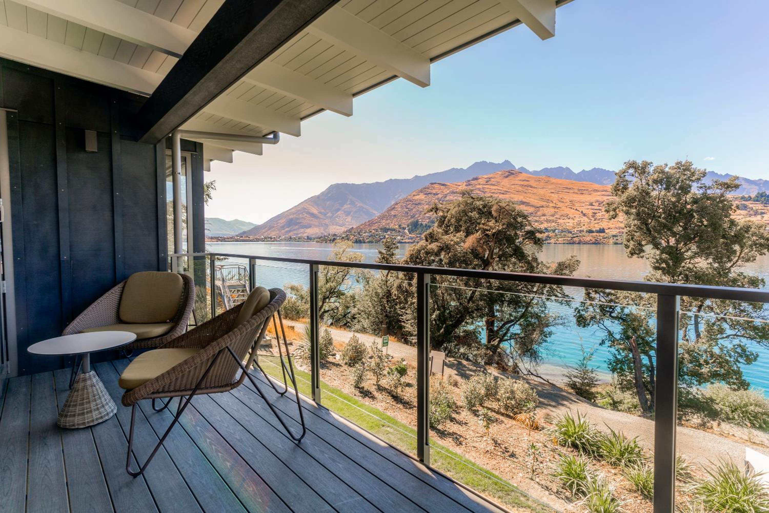 Experience the breathtaking views of Lake Wakatipu and the surrounding mountains from your private balcony at The Rees Hotel & Apartments.