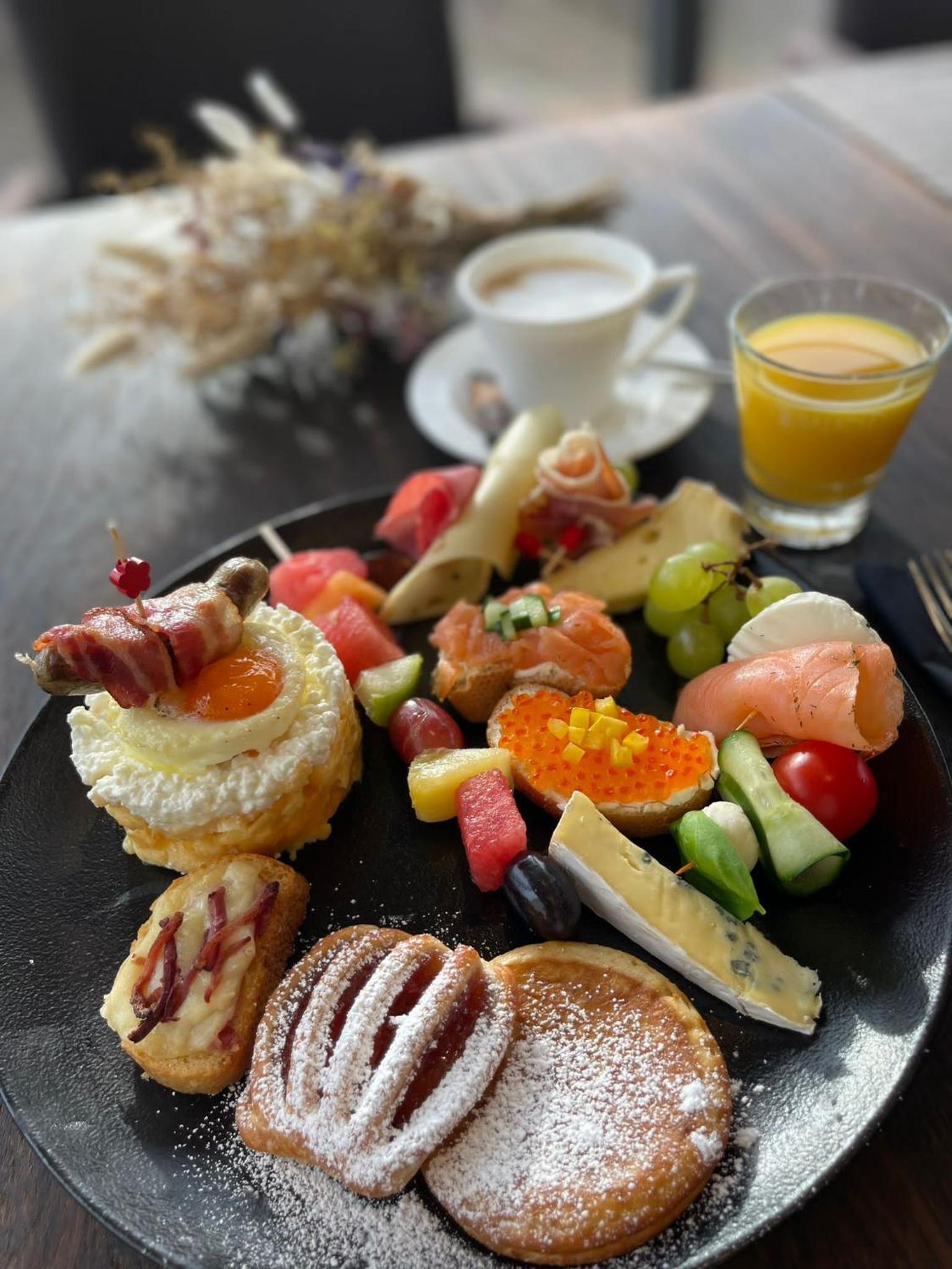 Завтрак был очень вкусным и изобильный. И главным образом, все продукты питания были свежие.