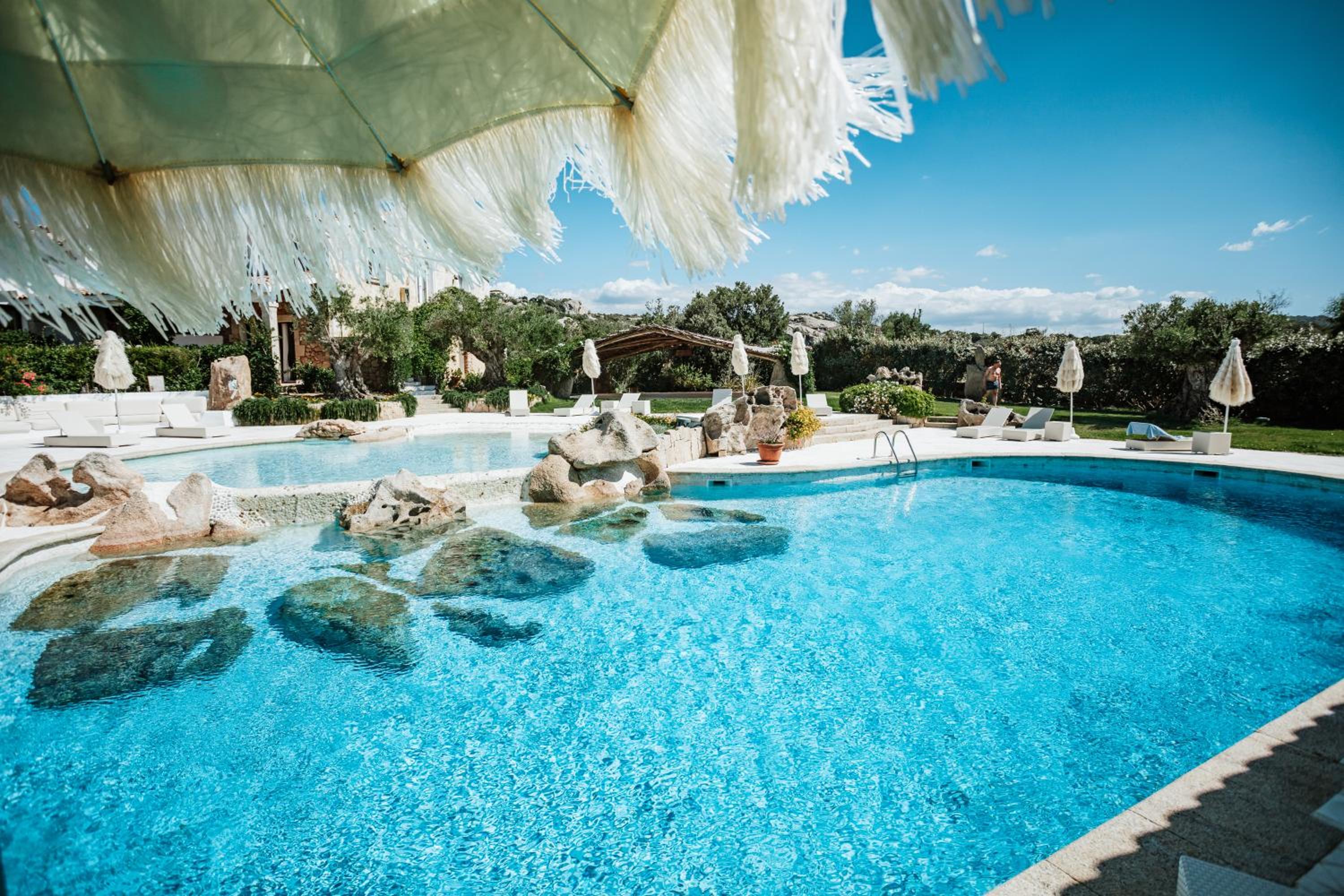 Hotel Pulicinu provides breathtaking views of Porto Sole Bay and La Maddalena archipelago. Swim and Dine: Enjoy the swimming pool with a children's area and savor delicious Italian and Sardinian dishes at the on-site restaurant. Cozy Accommodation: Relax in air-conditioned rooms styled with a traditional Sardinian flair, most featuring a balcony. Scenic Retreat: Nestled in a hilltop park, unwind on the sun terrace or explore the beautiful Emerald Coast nearby. Don't miss out on this perfect blend of comfort and nature.