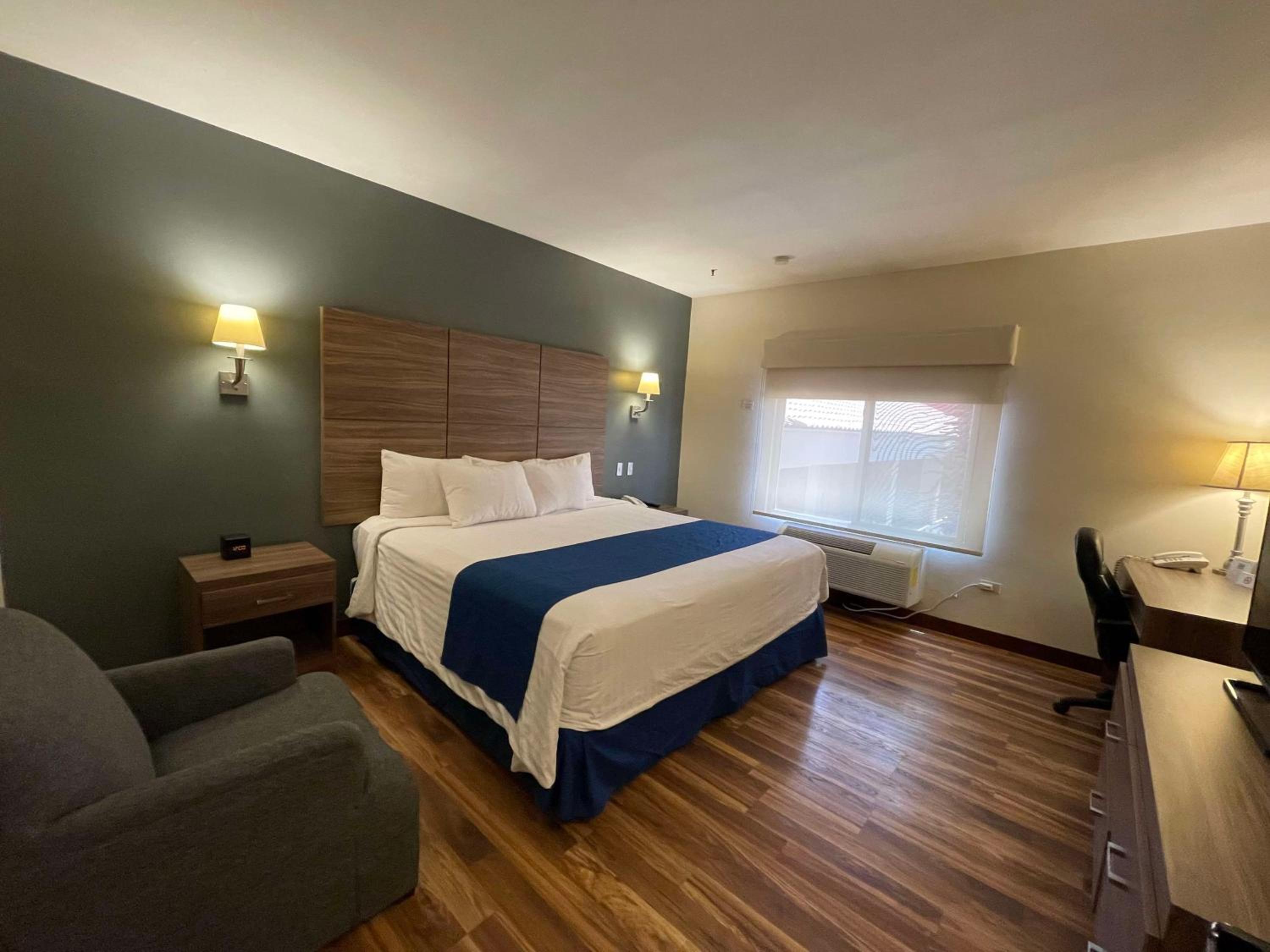 Enjoy air-conditioned rooms with free Wi-Fi, cable TV, coffee maker, and a seating area. The hotel also features an outdoor pool and fitness center.