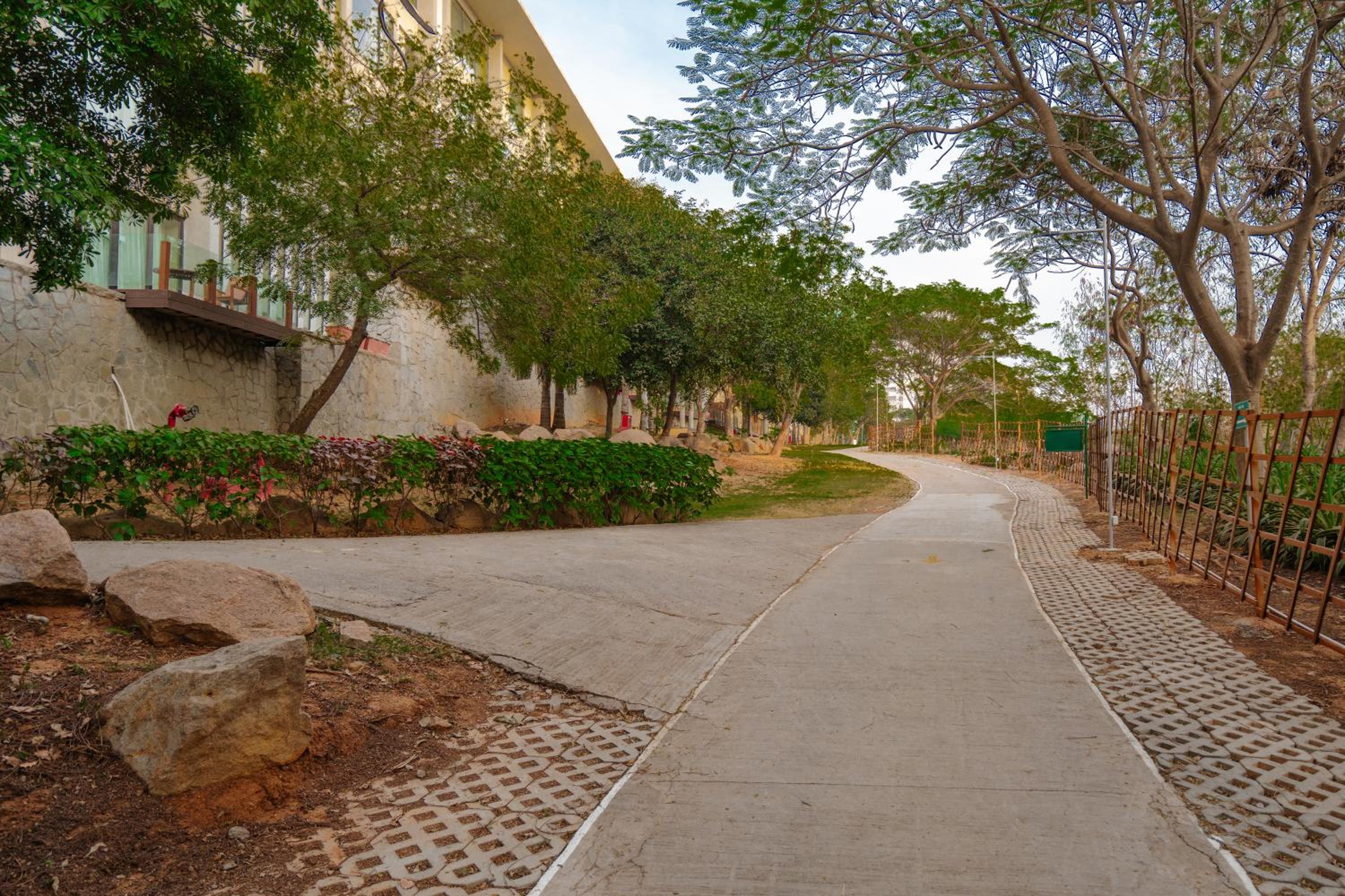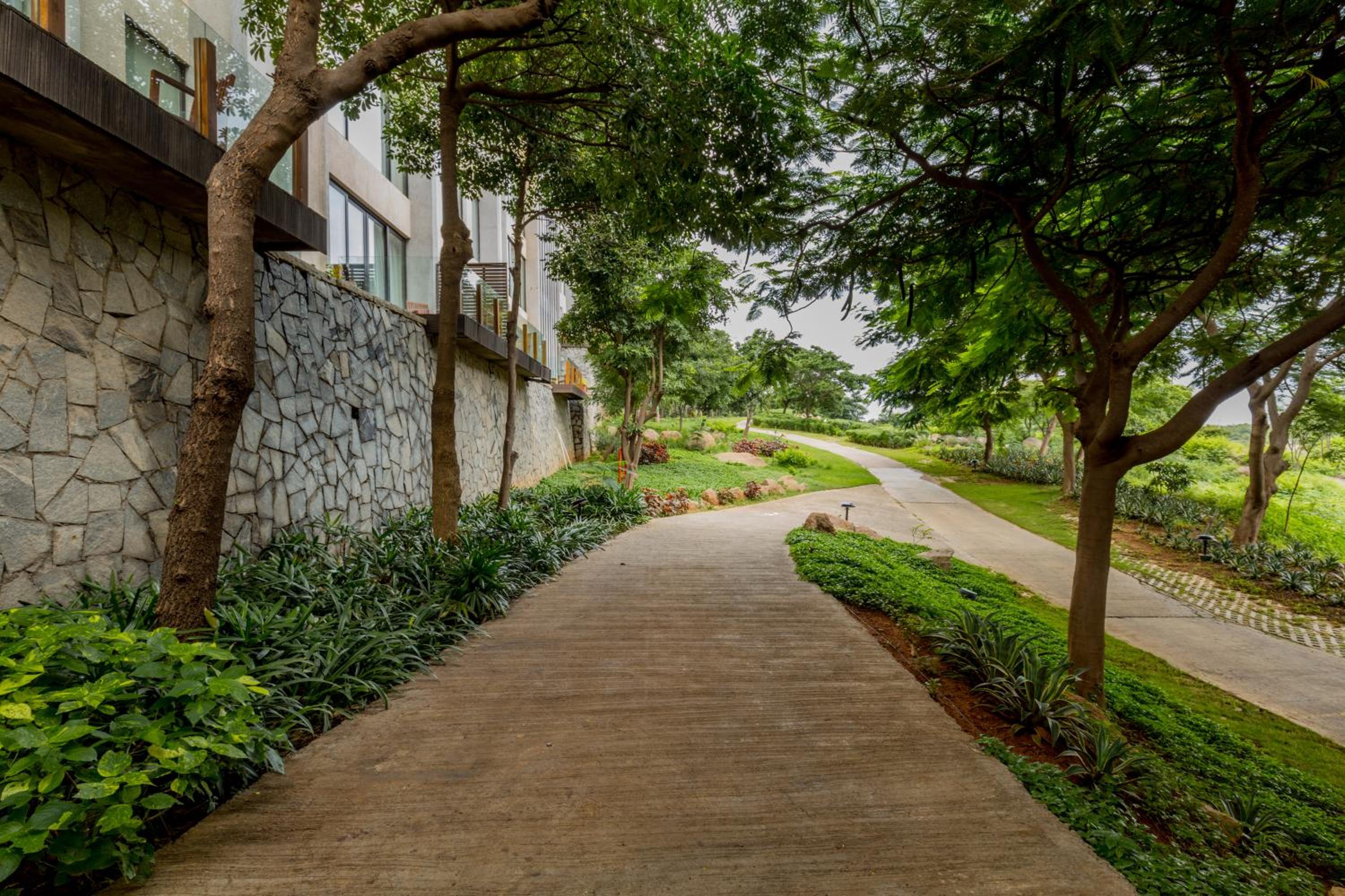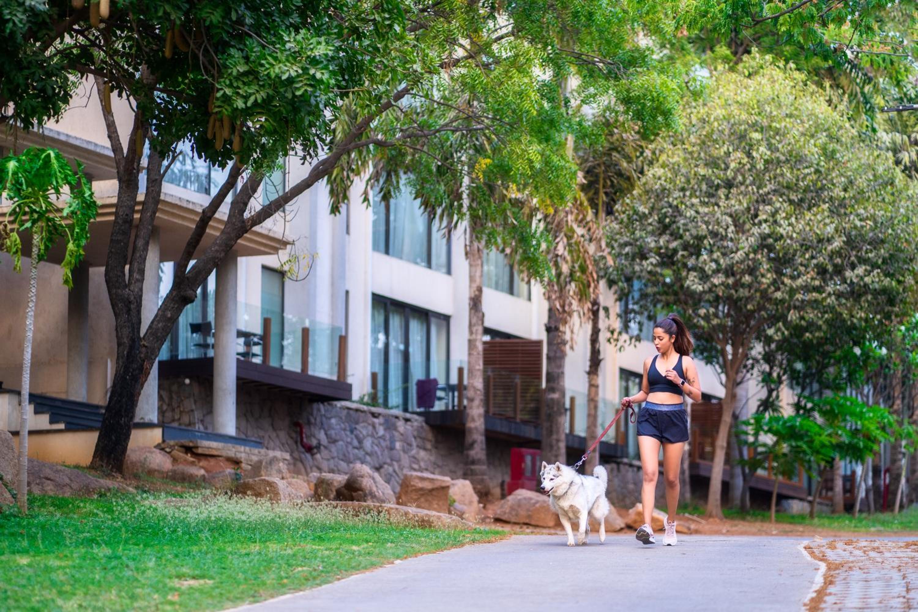 Guests can enjoy a range of facilities including a spa, swimming pool, open lawns, and a jogging track amidst lush greenery, perfect for fitness enthusiasts looking to unwind and relax during their stay.
