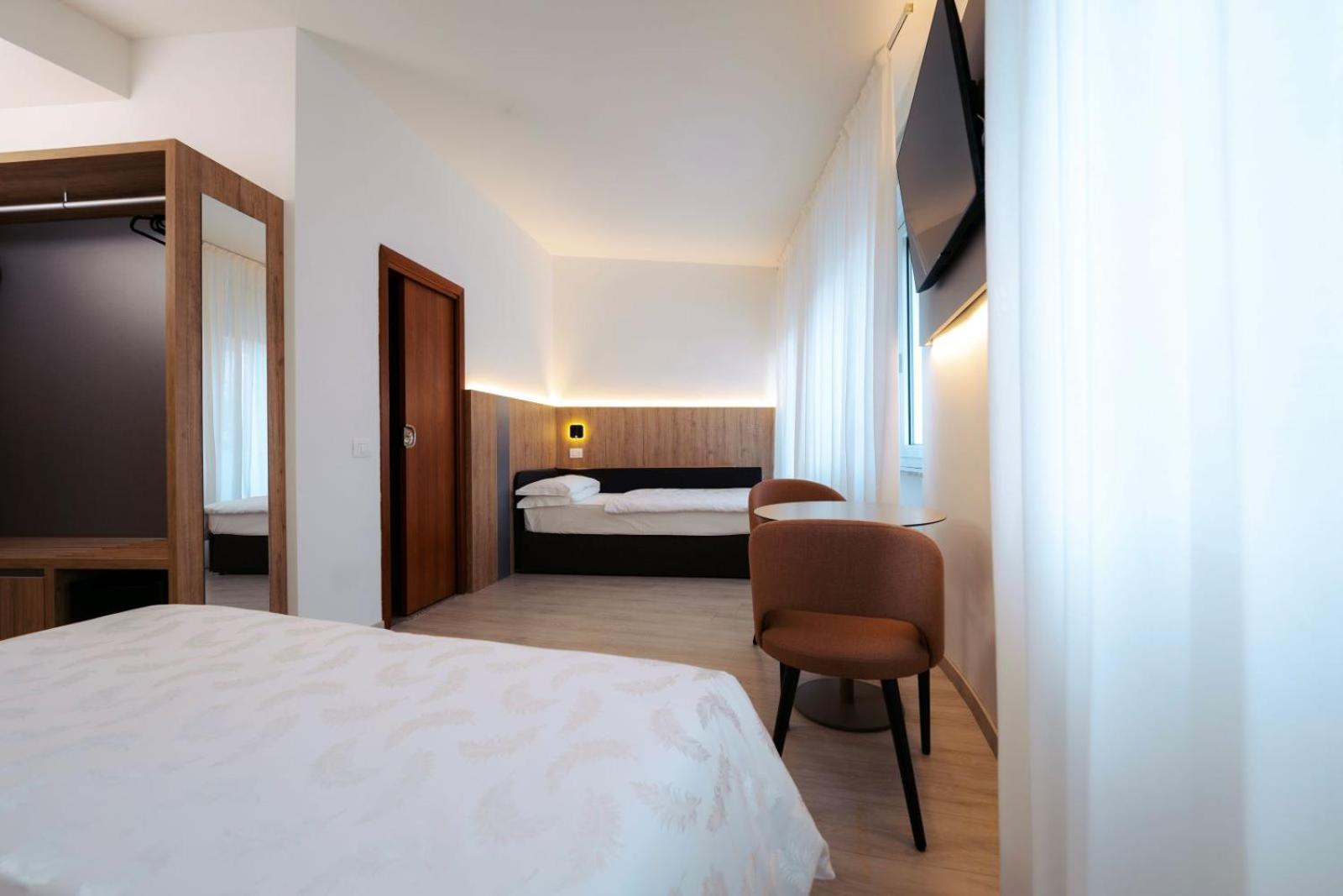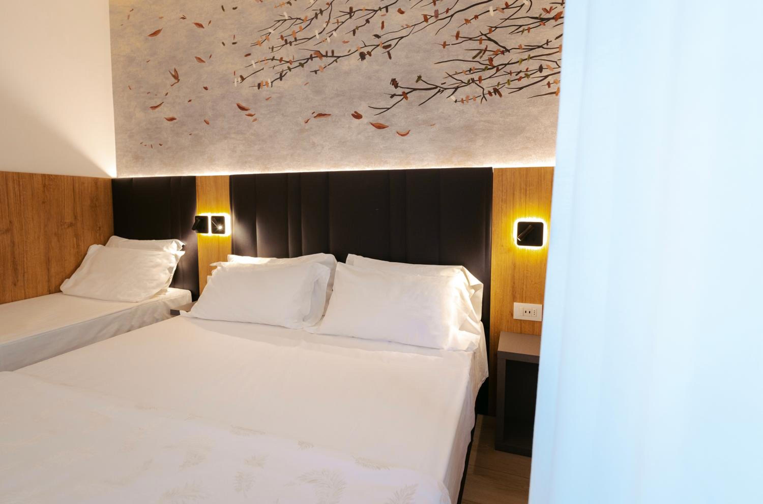 Abbiamo dormito in una camera quadrupla, gli spazi erano comunque grand e tutti i letti molto comodii. Il ristorante molto buono. Struttura pulita