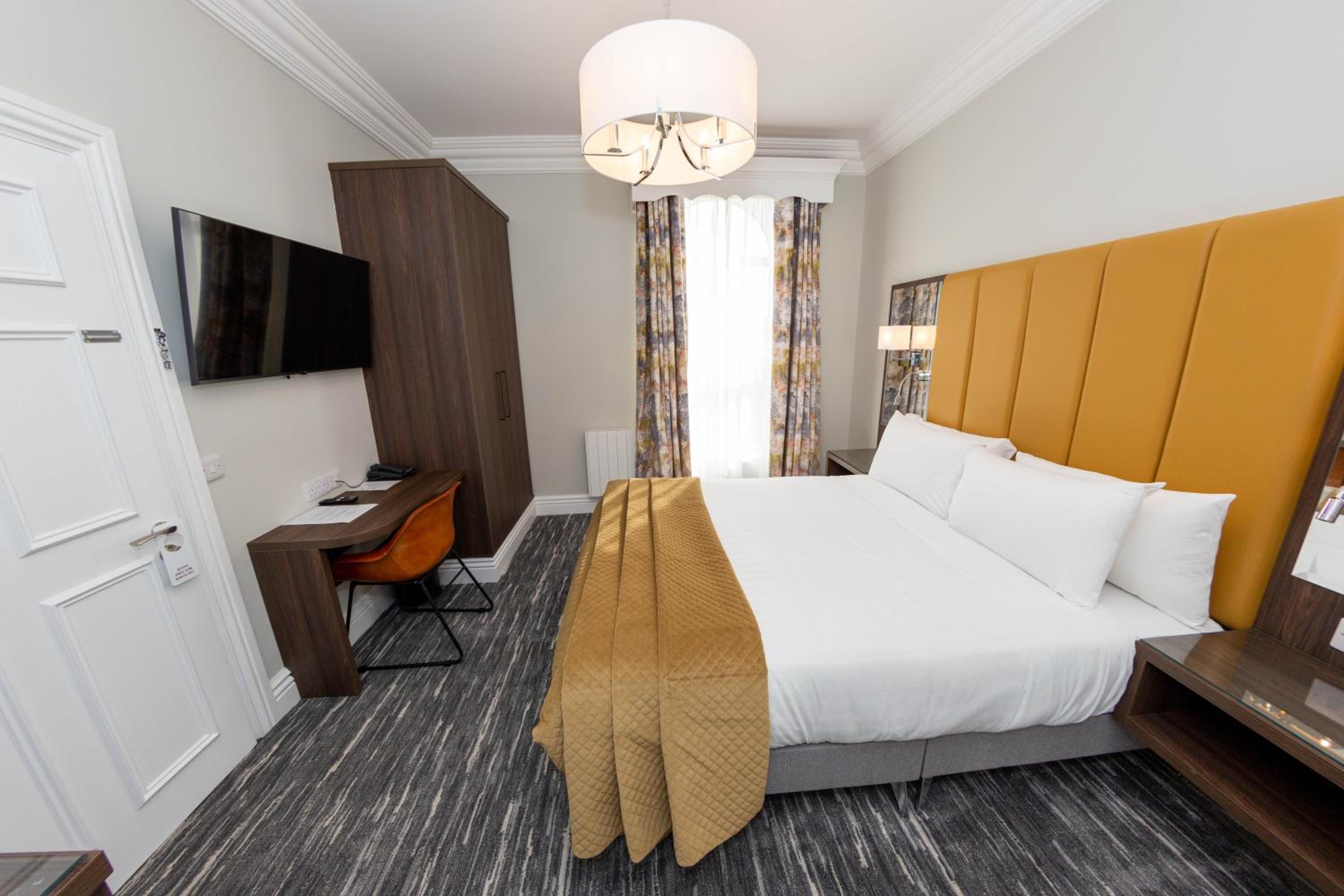 The Commodore Hotel offers a blend of historic charm and modern comfort, with elegant rooms boasting stunning views of Cobh Harbour. Each room is equipped with essential amenities including TVs, tea/coffee facilities, and picturesque sea views. The hotel's restaurant serves a delightful mix of traditional Irish and Mediterranean cuisine, prepared with locally sourced ingredients, all while overlooking the picturesque harbour.
