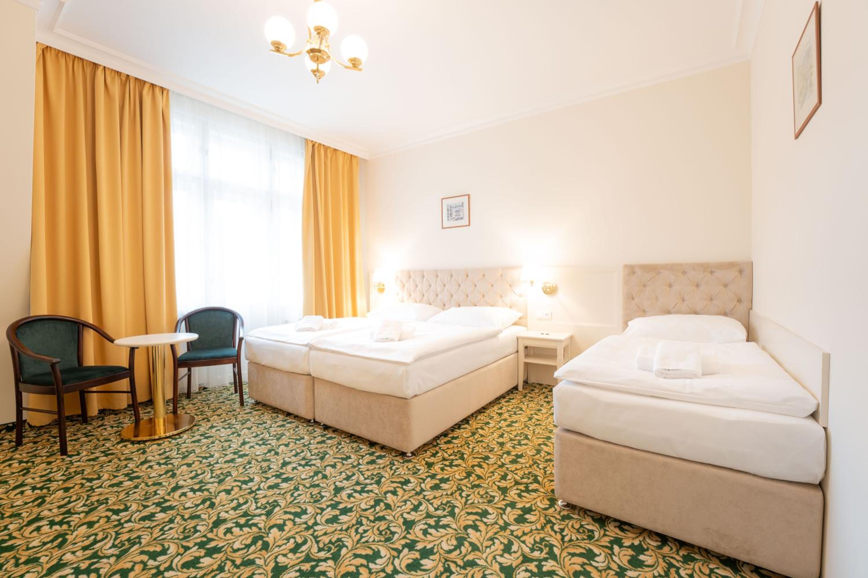 Pokoj malý,ale útulný a čistý. Hotel na dobrém místě. Snídaně dostačující,ale bohužel v jiné budově.