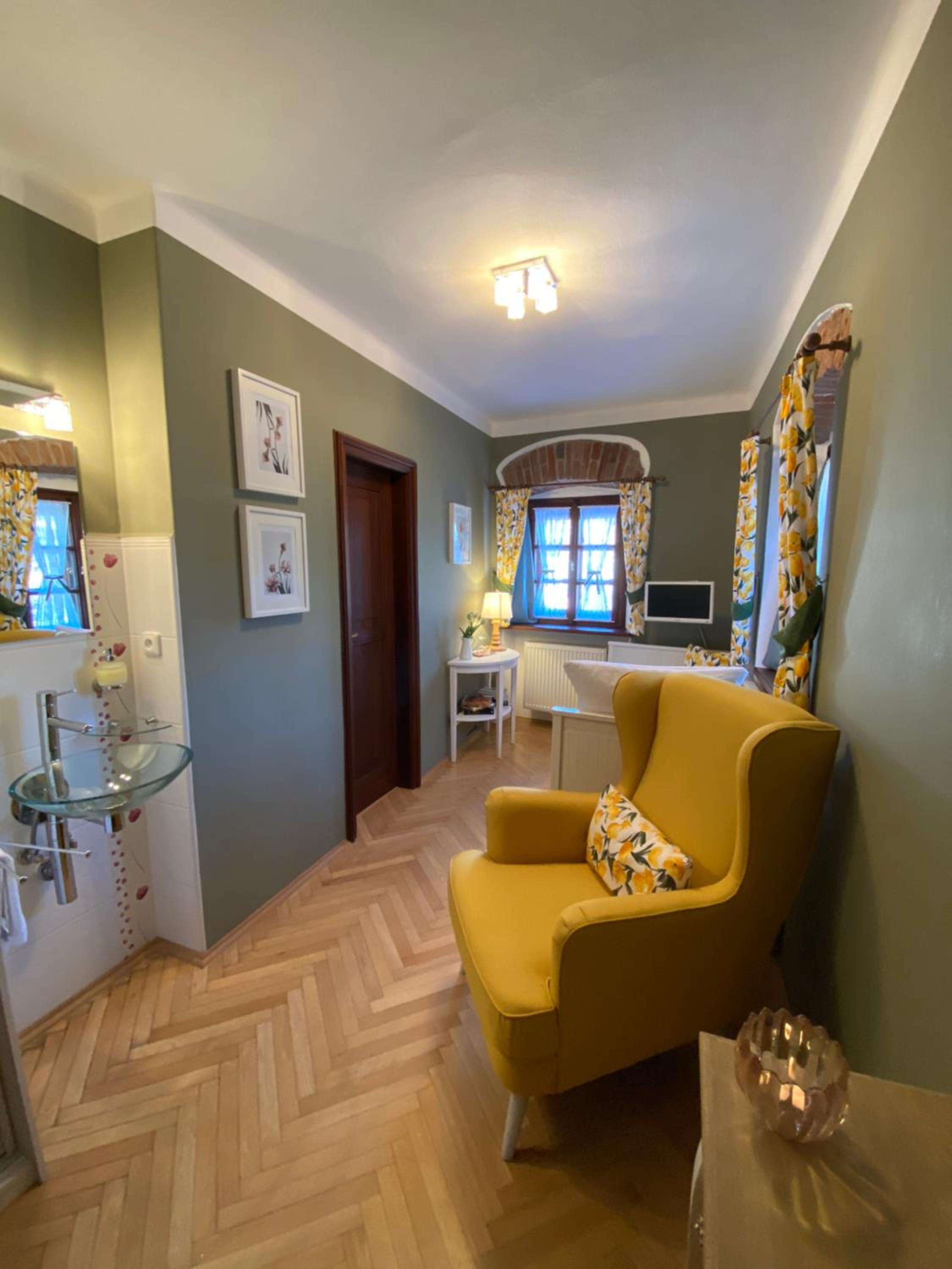Blisko starego miasta. Bardzo ciekawy wystrój. Sklep spżywczy pod ręką- 100 m. Super śniadanie. Czyściutko. Pani Michaela bardzo uprzejma i pomocna.