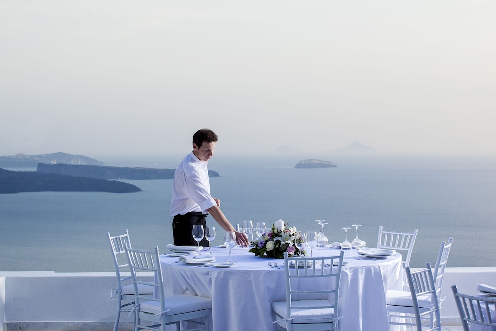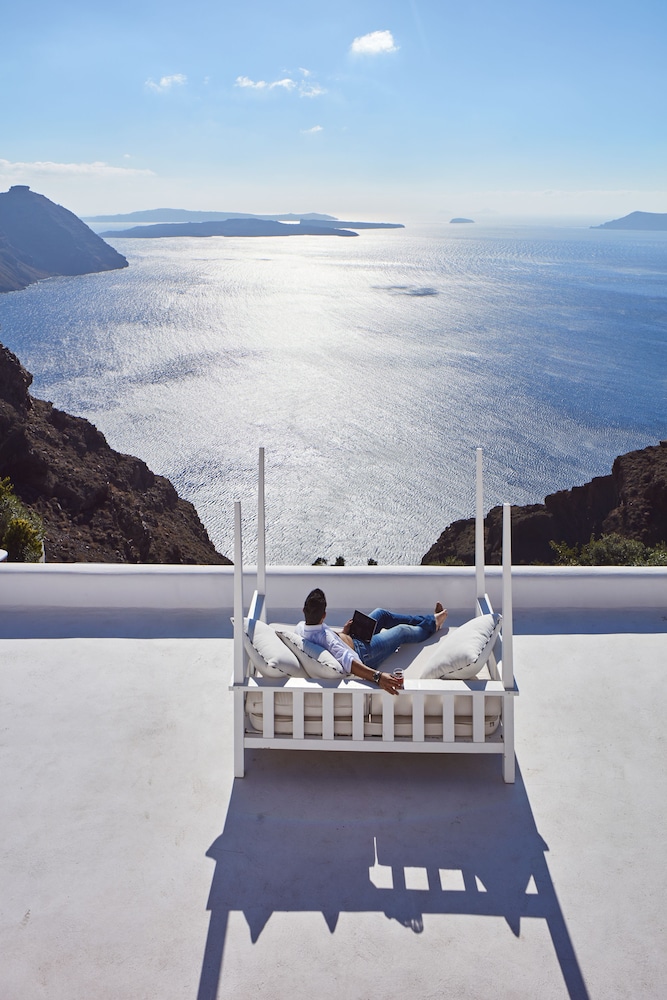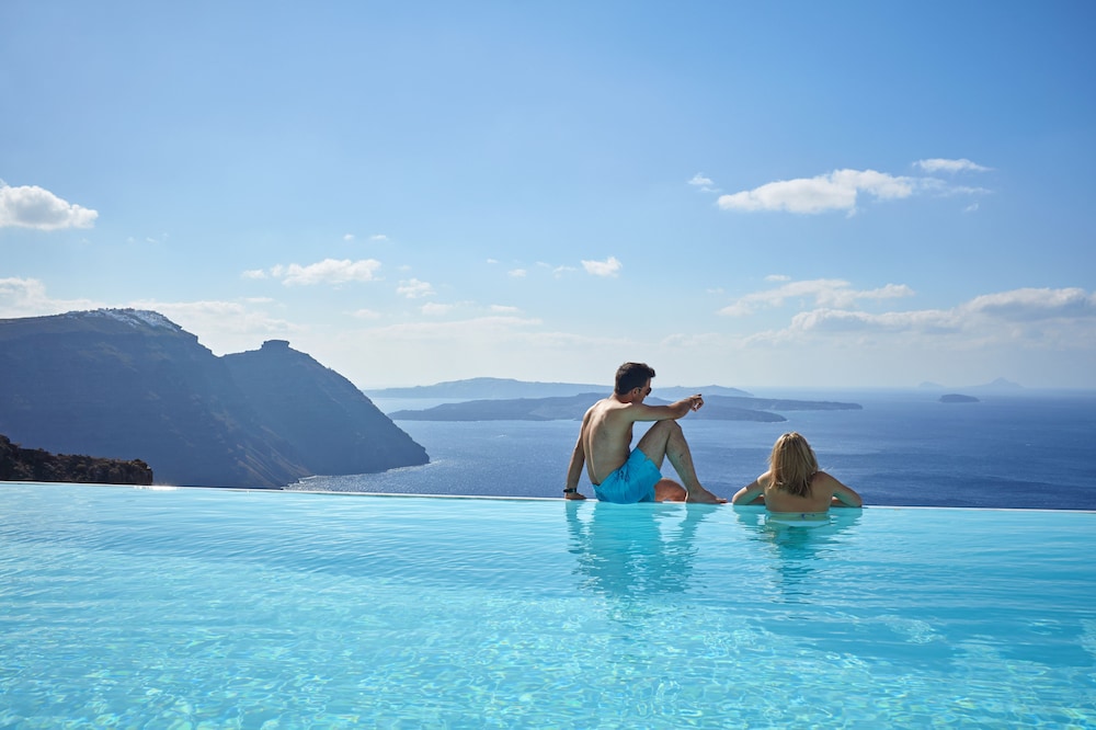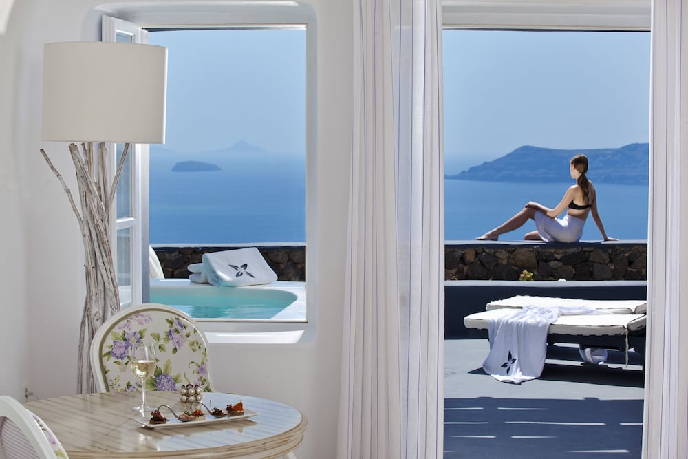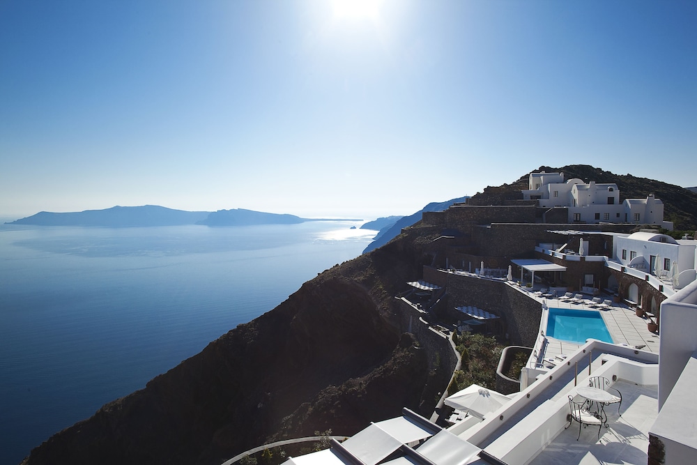 Amazing hotel. what a view! The room was wonderful and the service was top notch. We loved the infinity pool. We ate at the restaurant 3 evenings because we loved the food and the view. It was much better than the restaurant in Oia. We visited Oia but were glad we didn’t stay there. Too busy, tourist trap. We would stay here again.