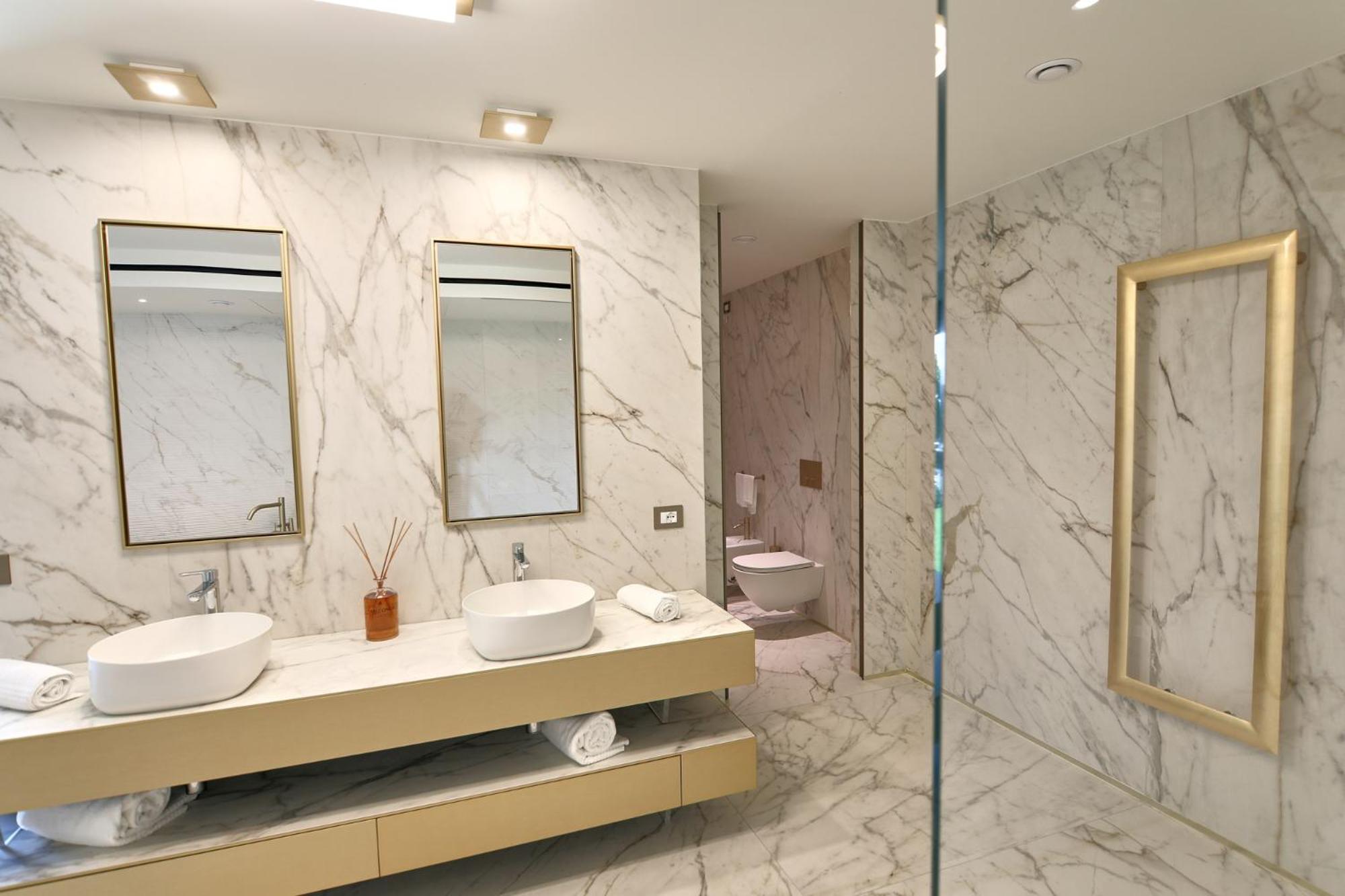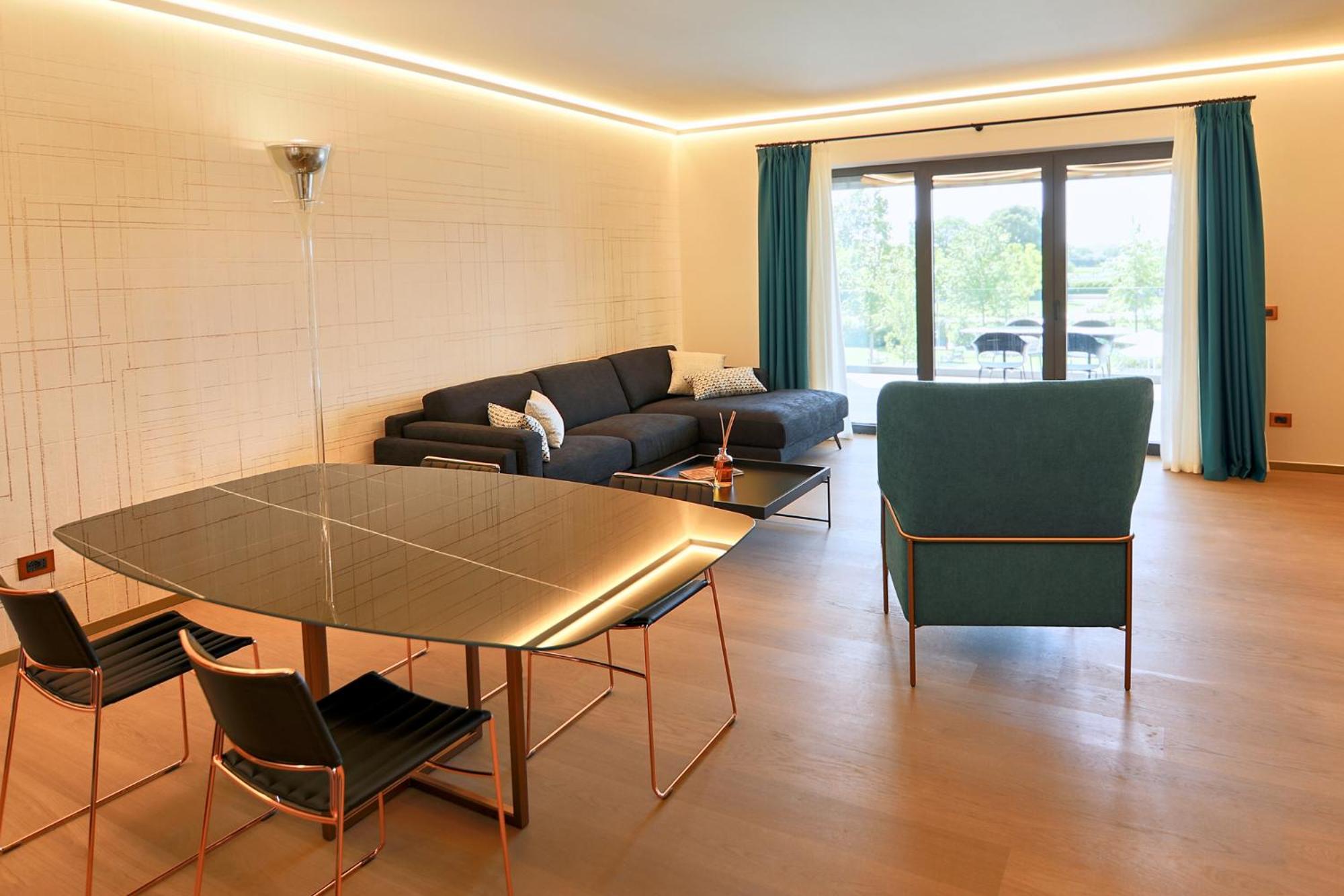 Indulge in the modern wellness center with heated swimming pools and traditional Italian cuisine at the on-site restaurant. The Corte 22 design bar and Pool bar are perfect for socializing over snacks and drinks.
