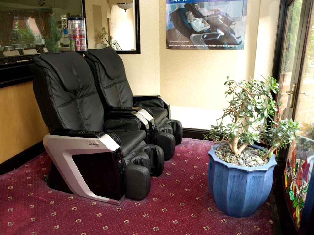 Booked a double room with seating area as pictured on website. On arrival Double room had one chair and no table. Reception arranged for another chair so we could both sit down but no table. Bathroom very poo