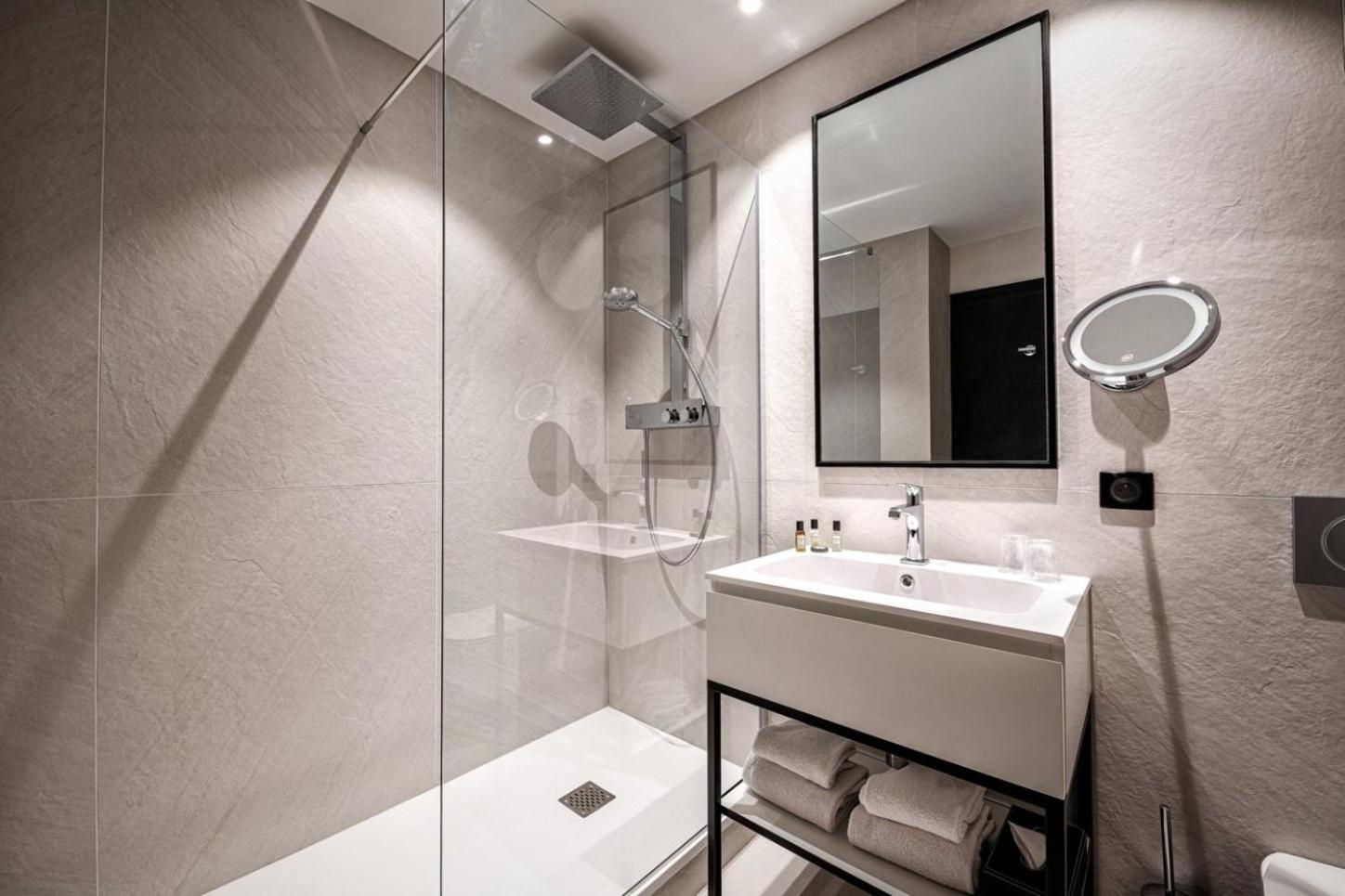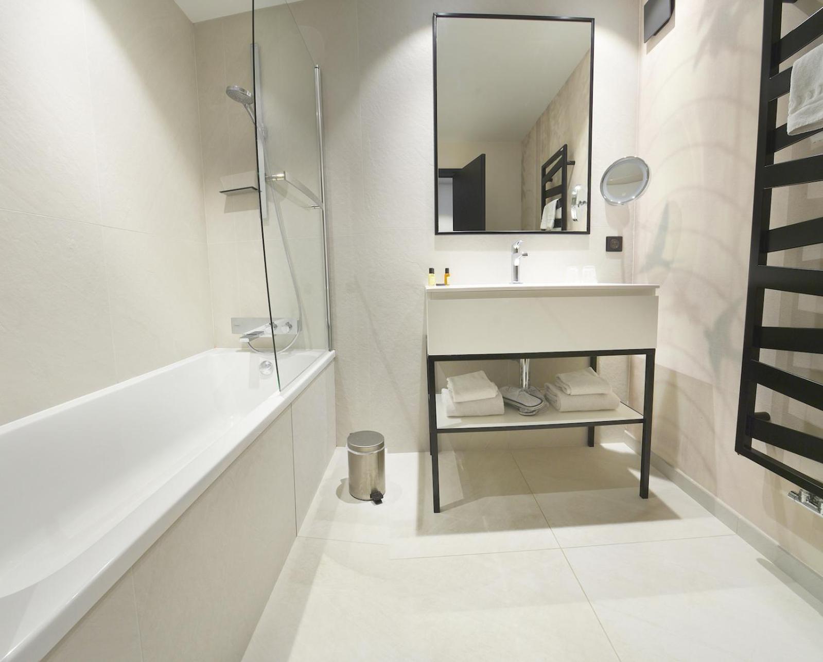 Lit très confortable et salle de bain propre et spacieuse.