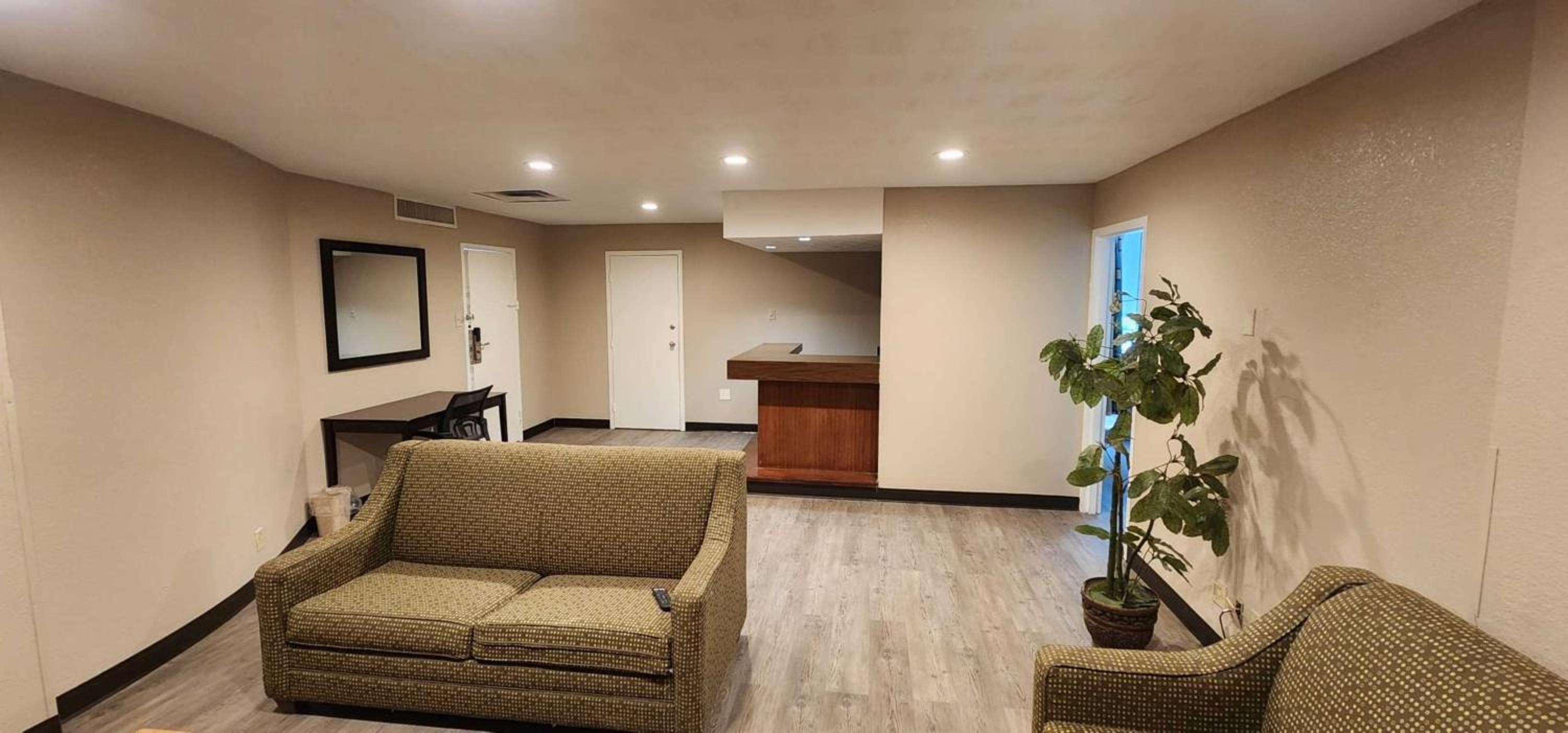 They gave me the wrong room. They then assigned some other guest to our room and they walked in our room. I asked if I could get a blanket and a sheet for the pull out couch I was given one blanket and was told there was no sheets for the pull out couch. I asked if I could get something to put over the mattress which is wrapped in plastic. I was told no the one blanket he gave me was all I could get. I would definitely look for other places to stay. This place is horrible. The electrical in the room I’m staying in is shorting out.