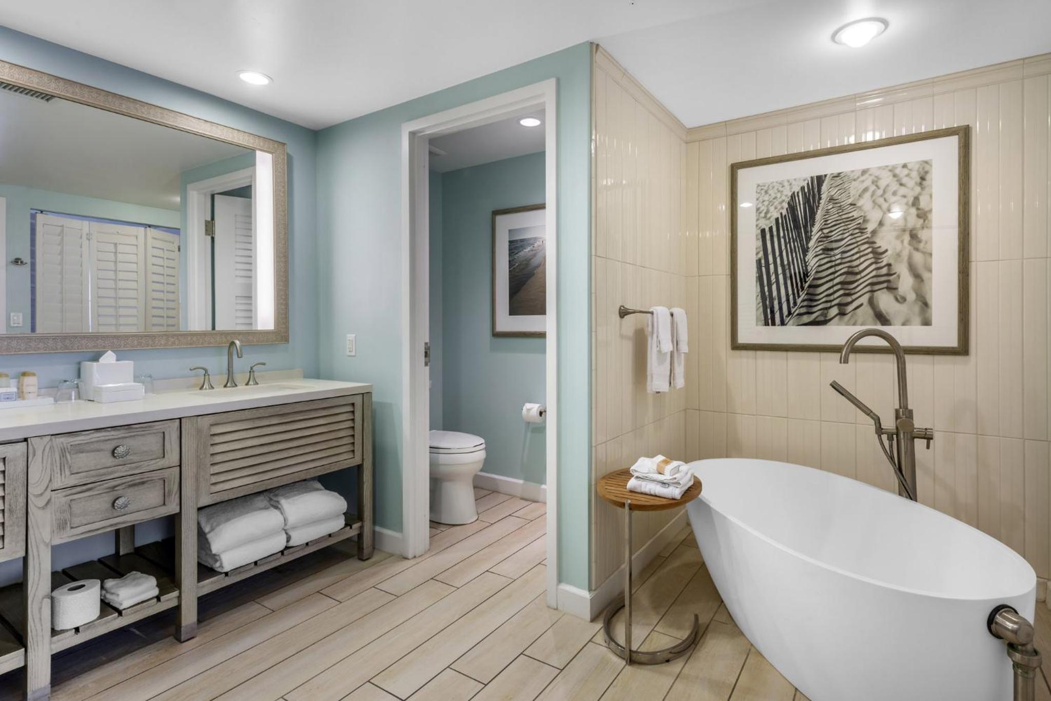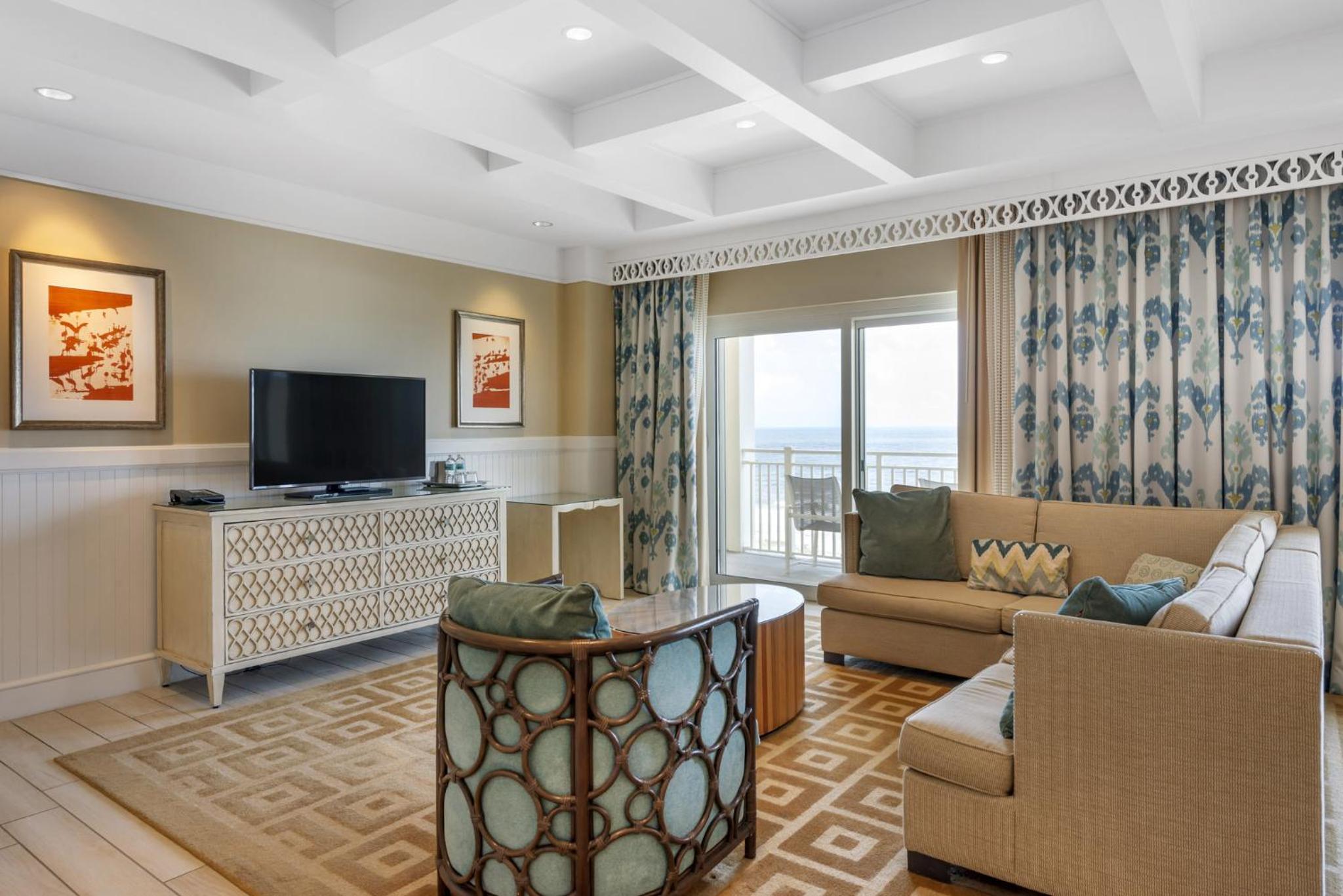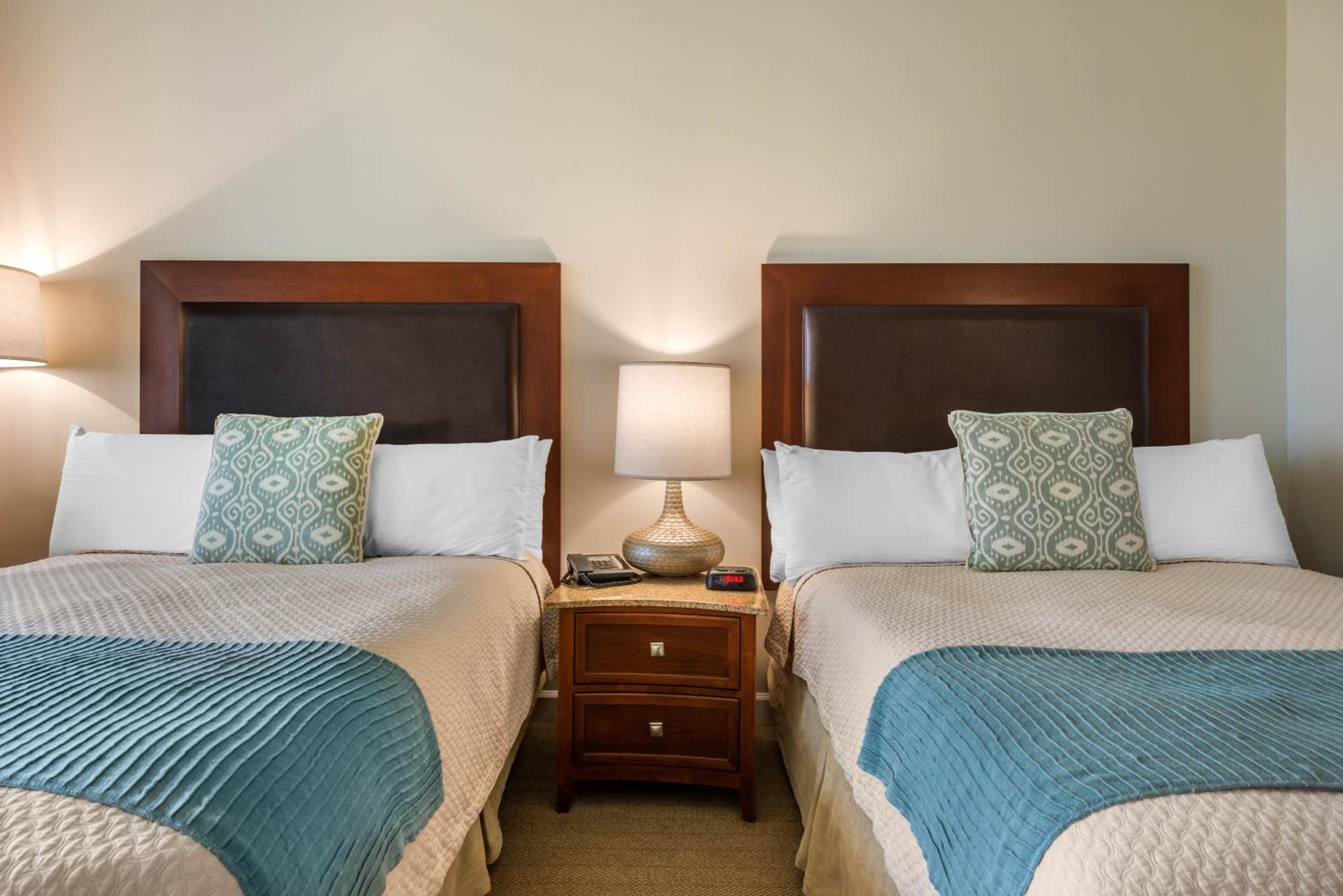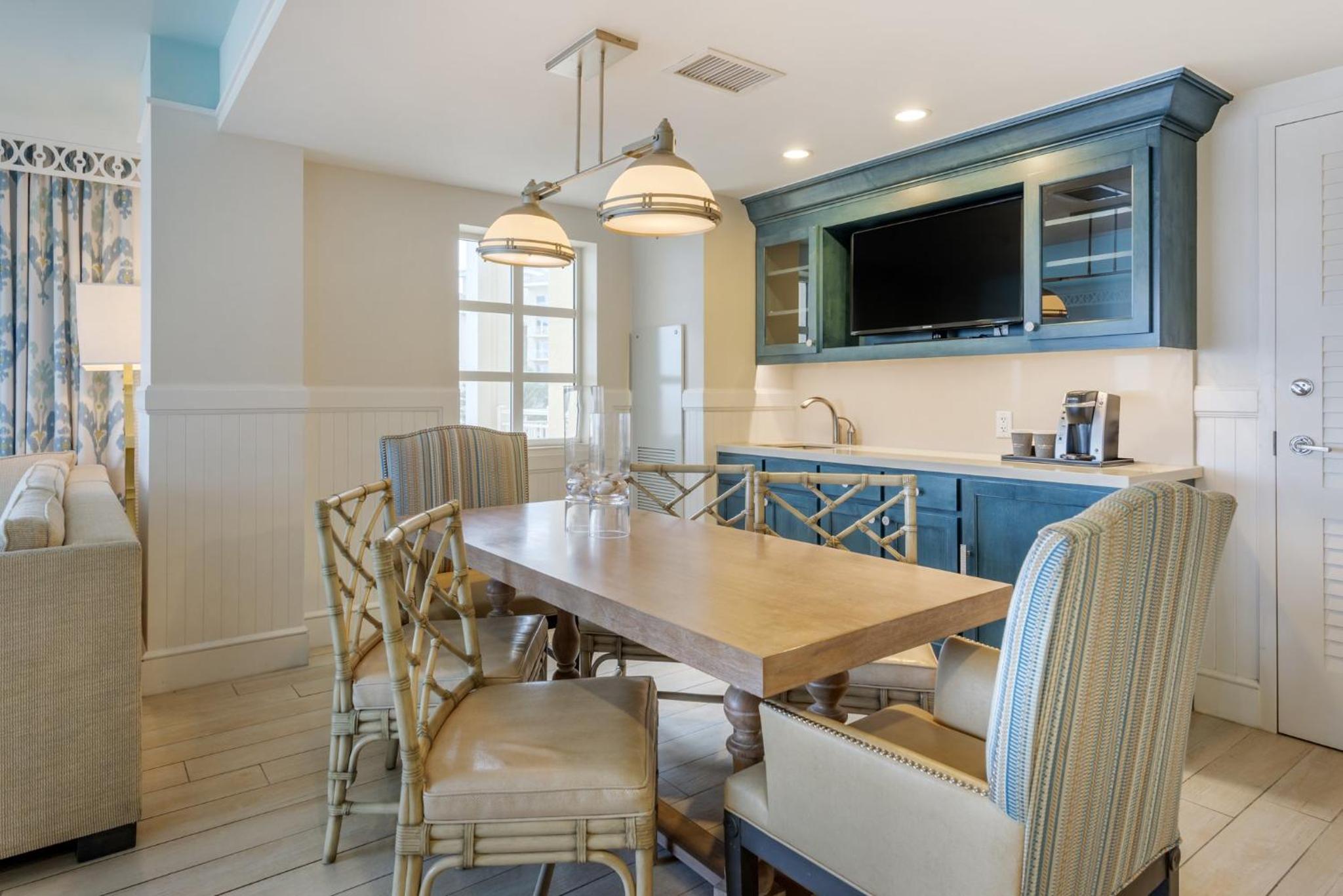 Each room at the resort is equipped with modern amenities including a flat-screen cable TV, work desk, and a private balcony or patio. Guests can enjoy the comfort of Egyptian cotton linens and upgraded features like spa baths and kitchens in select rooms.