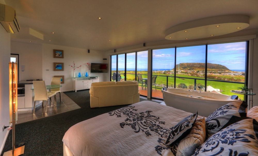 We stayed at the Horizon Deluxe Apartments during the last few days of our honeymoon. It was our favourite accommodation in Tasmania. The apartment was modern and stylish and had everything we needed for a comfortable stay. The views of Stanley were amazing from every corner of the apartment and we especially loved sipping wine in the bath. We would definitely come back - thank you!