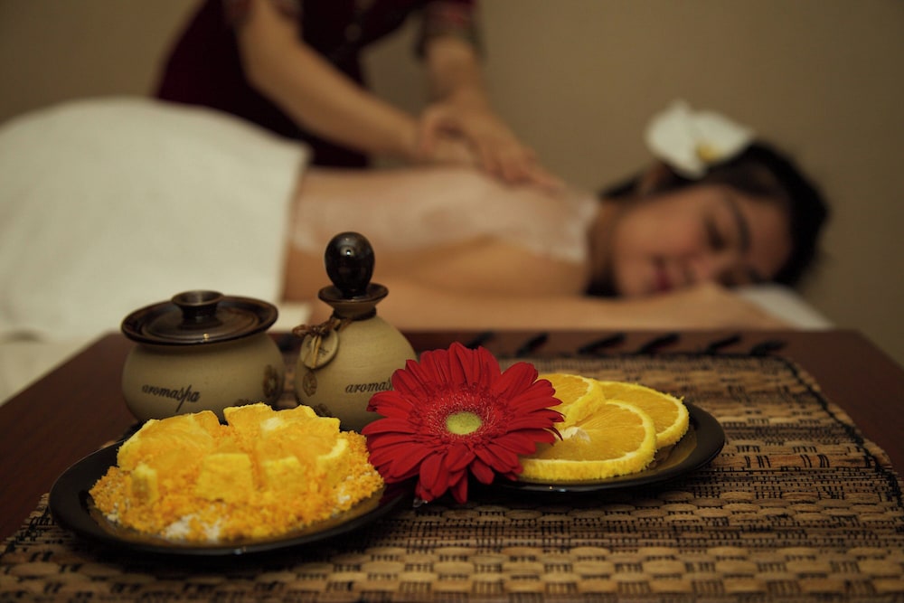 Indulgent Spa & Wellness Relax and rejuvenate at our full-service spa, featuring a variety of massages, body treatments, and facials. Engage in invigorating workout sessions at our health club or unwind in the indoor pool and sauna for the ultimate wellness experience.