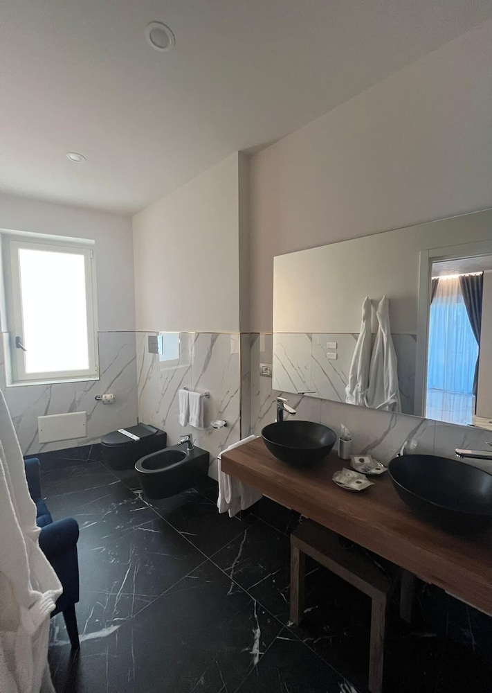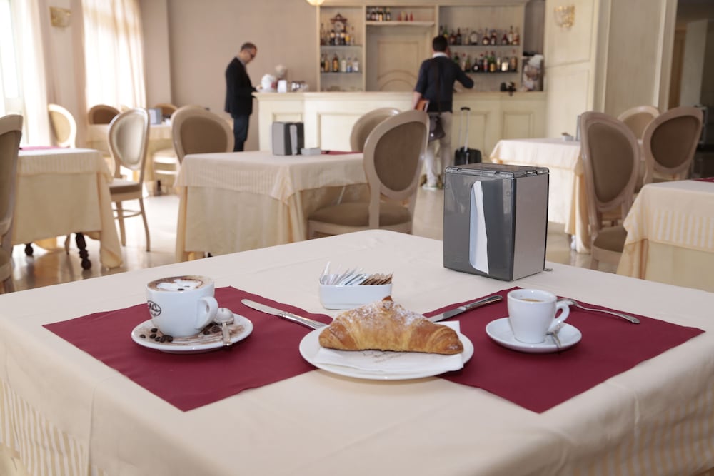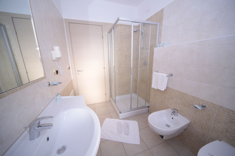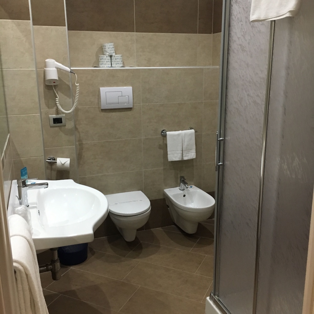 Hotel carino, molto curato l'esterno con la piscina per adulti e una per bambini...anche se visto il periodo non ne abbiamo usufruito. Gentilezza del personale, colazione scarna da migliorare per un 4 stelle. Il ristorante ottimo, abbiamo soggiornato una notte e stanchi ci siamo fermati al ristorante e ci siamo trovati benissimo ottima la pizza, come i primi e i secondi e il dolce! La camera standard che ci è stata assegnata non mi ha entusiasmato, piccola...bagno ok, il materasso lo cambierei ormai non esistono materassi del genere in un buon 4 stelle, il confort è la prima cosa in una stanza insieme alla pulizia e all' arredamento che considero scarno. Piacevole la presenza dell'accappatoio in camera e pantofole ma che ho dovuto richiedere io perchè non erano presenti nella stanza. Dimenticanza? Per la nostra esperienza fatta lo considero un hotel 3 stelle