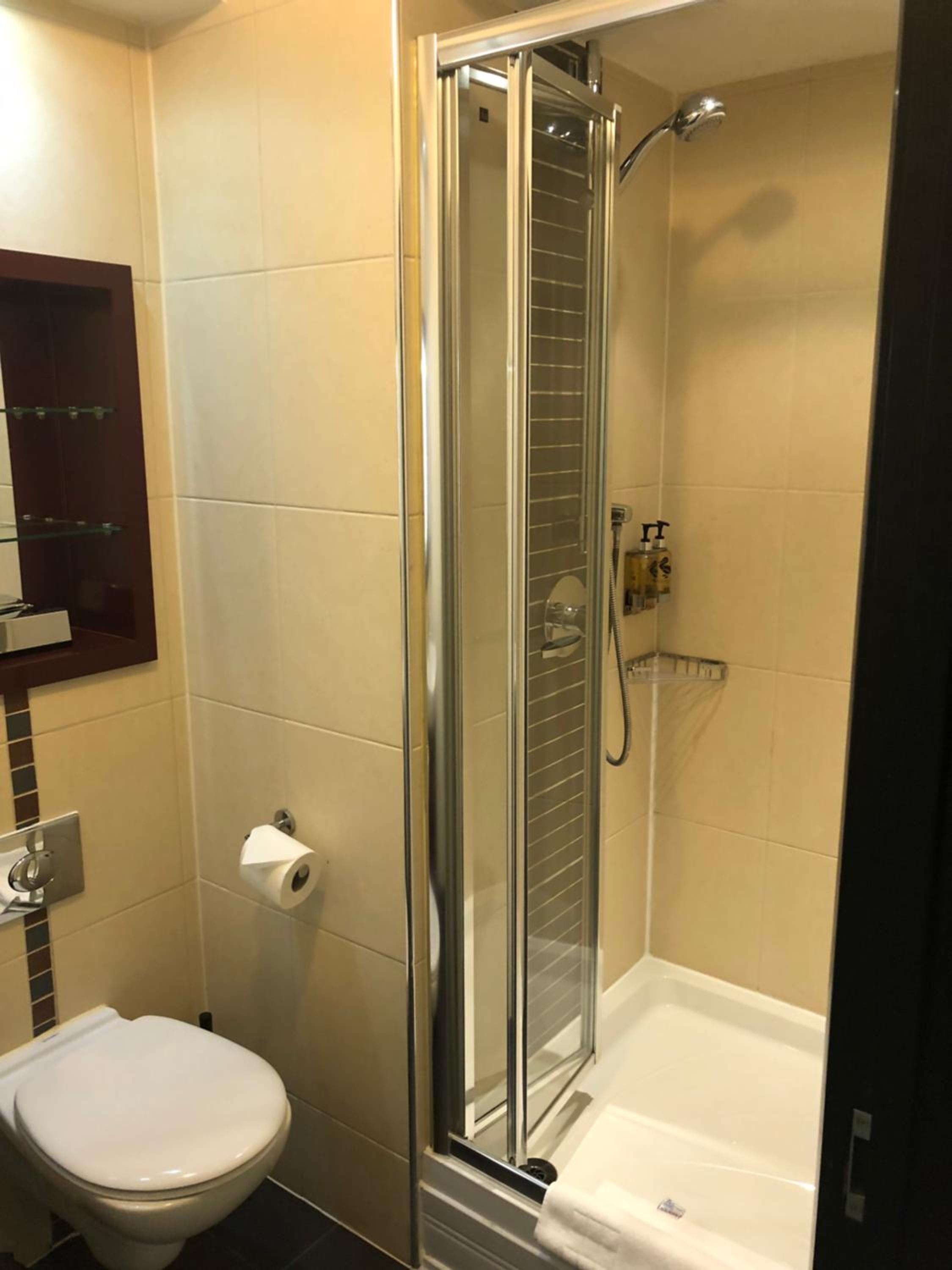 Bathroom requires substantial attention. Glass door only closed with lots of scraping and noise which is a bit unnerving being glass. Floor tiles are lifting in the bathroom. Bath panel and general maintenance around the bath needs attention.