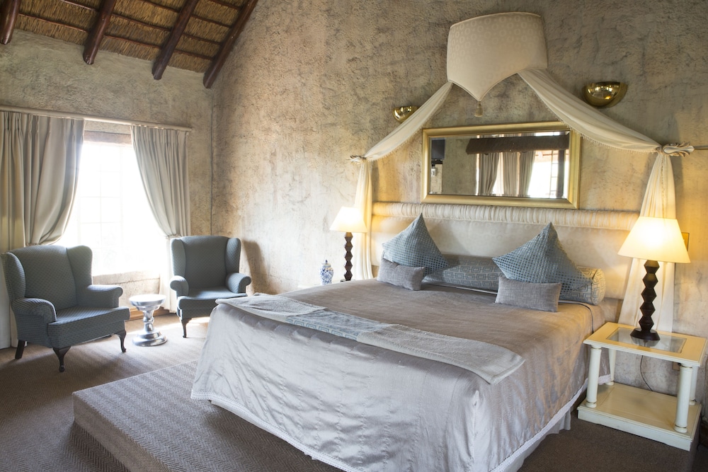 Magnifique lodge au mileu d’un superbe parc. L’accueil est aimable et les chambres somptueuses, immenses et dotées de tout le confort. Très bon restaurant et petit déjeuner copieux. La seule difficulté est de trouver le lodge au bout d’une route en terre, à gauche de la route R573 en s’eloignant De Pretoria. Aller assez loin sur cette route sans se décourager ! Le lodge est à 1h. De l’aerop de Johannesburg, donc bonne étape pour arriver ou repartir d,AFS