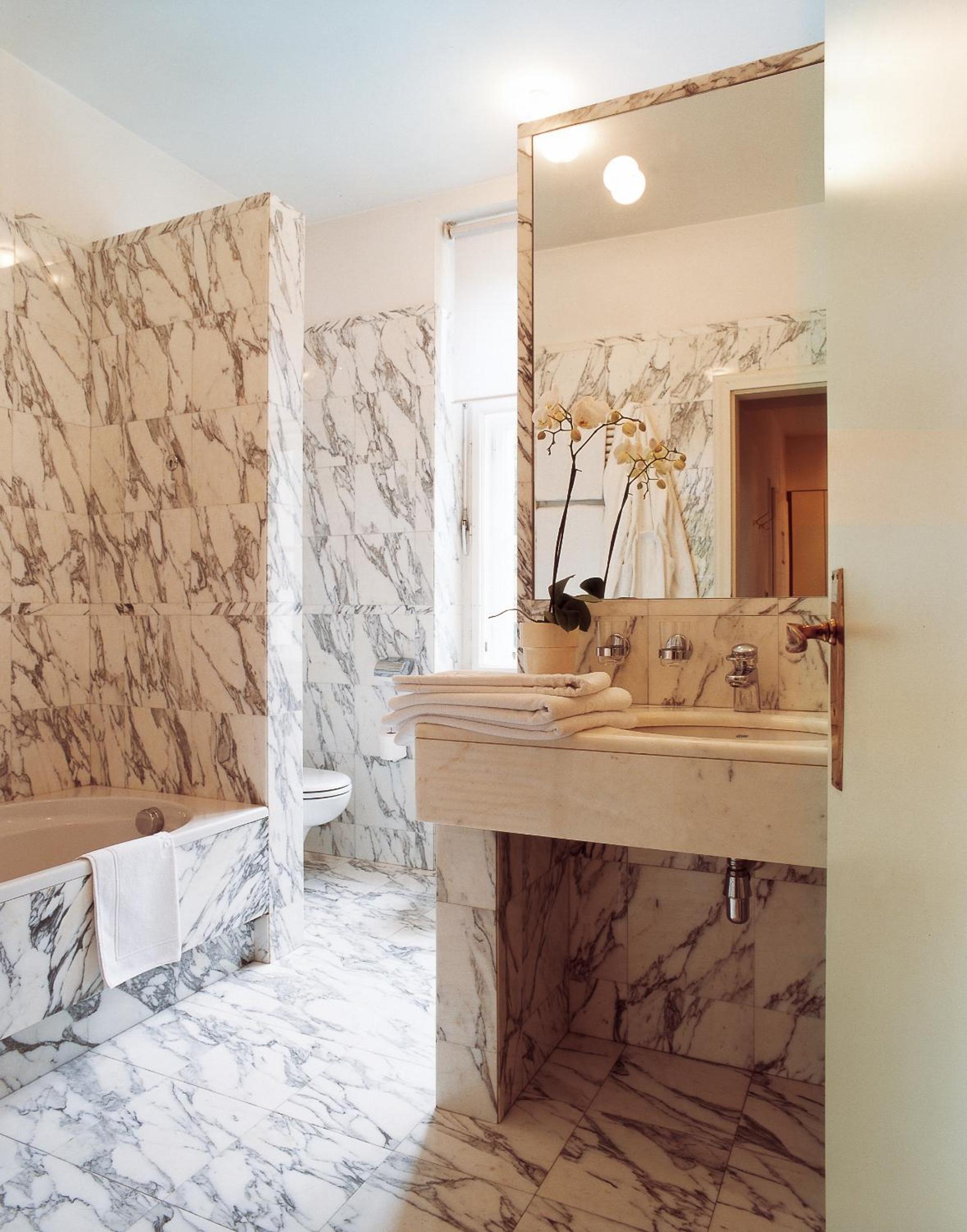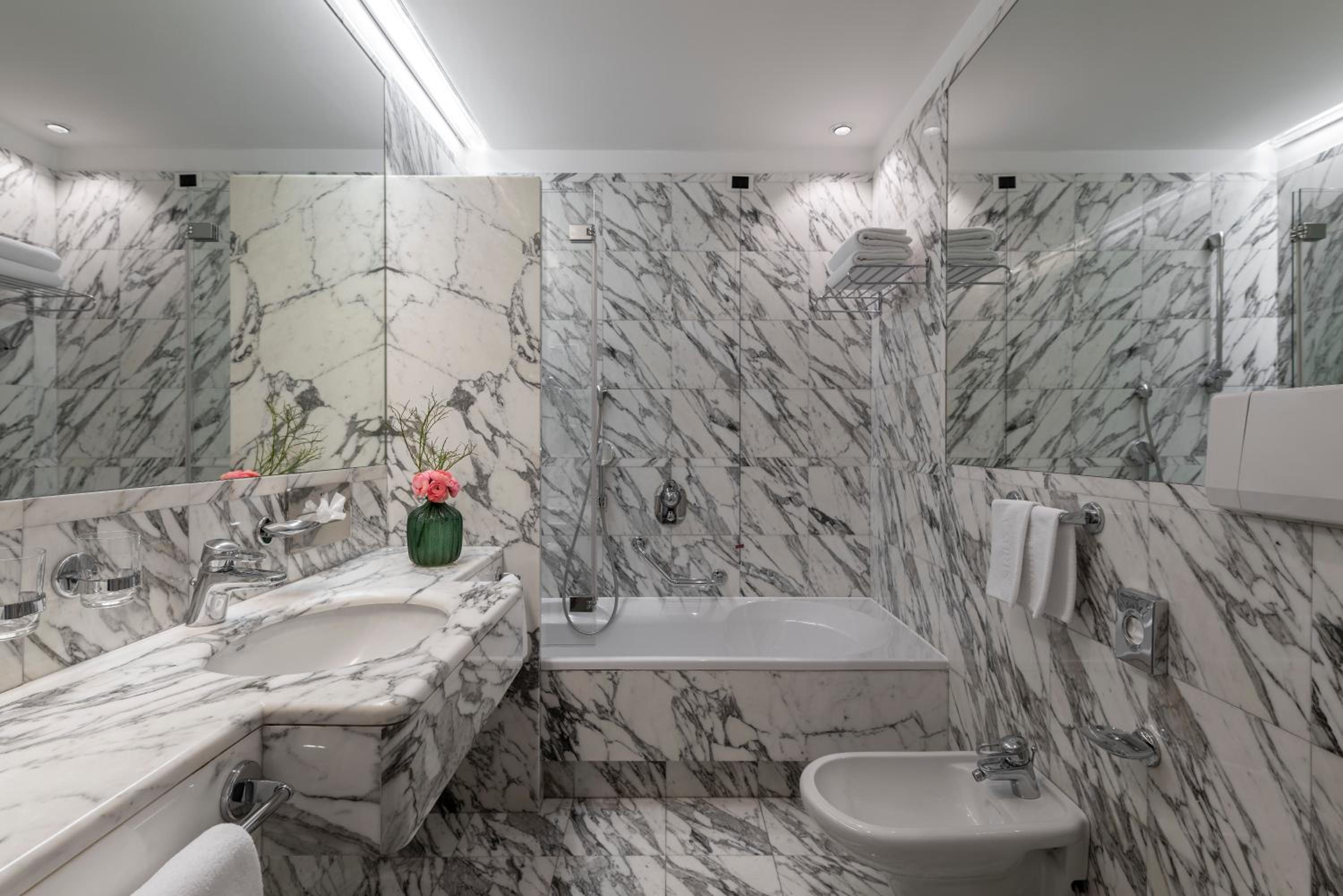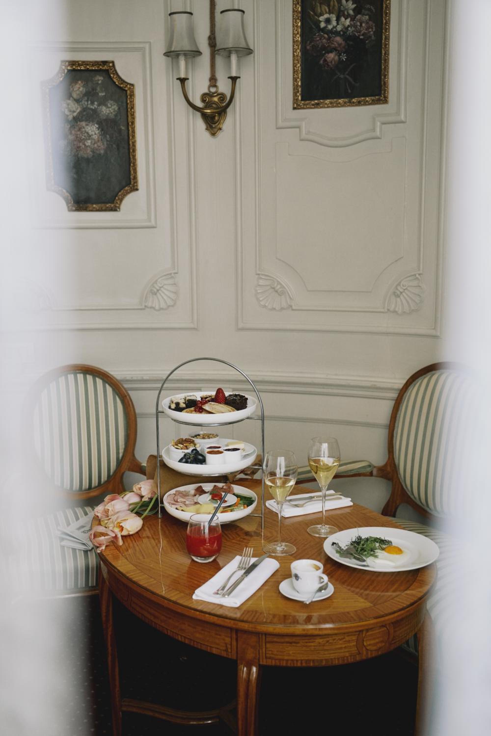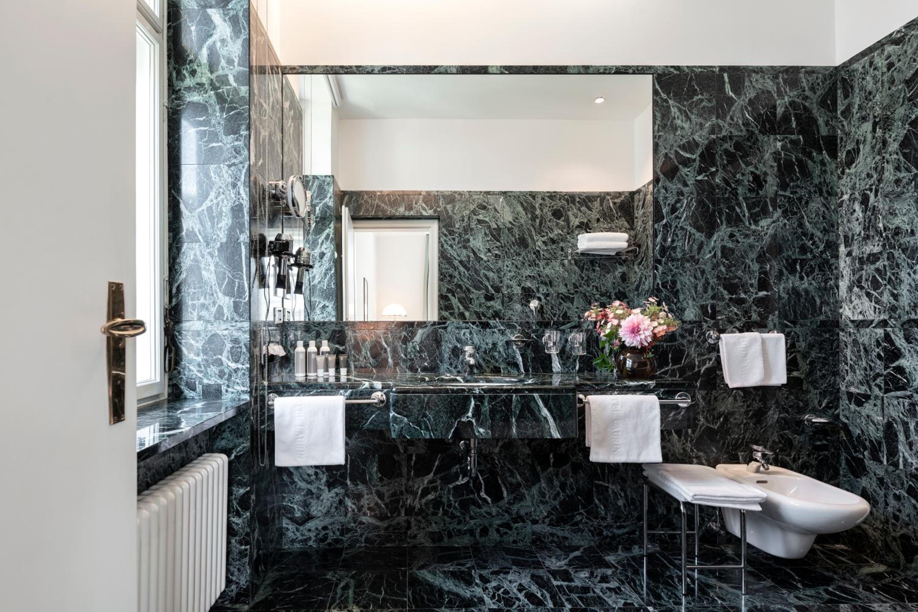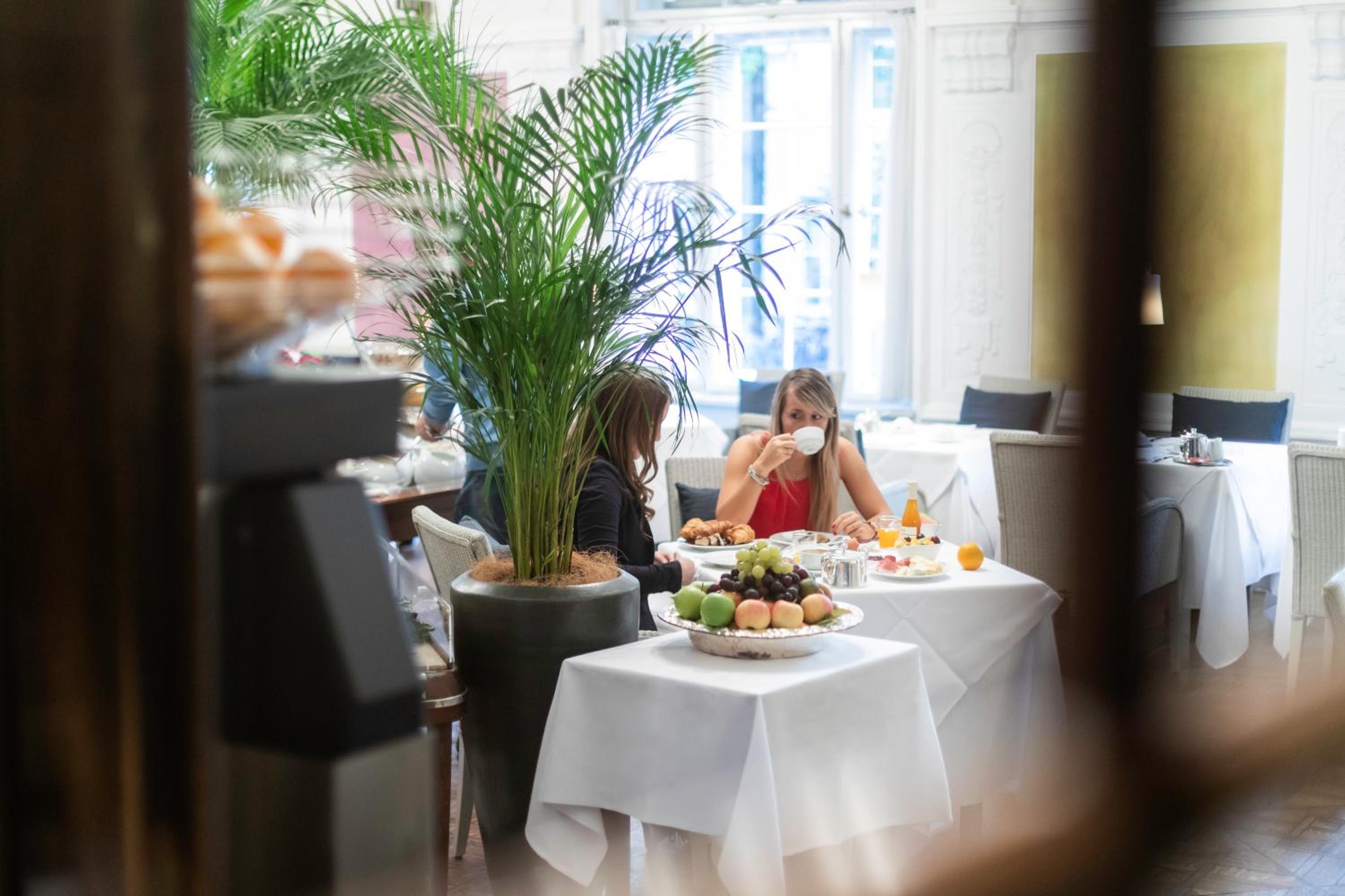 Indulge in a mix of regional and Italian cuisine at the on-site restaurant, which extends into the garden during the summer months. Complete your day with a drink at the Laurin Bar, featuring original Art Nouveau frescoes and a serene ambiance.