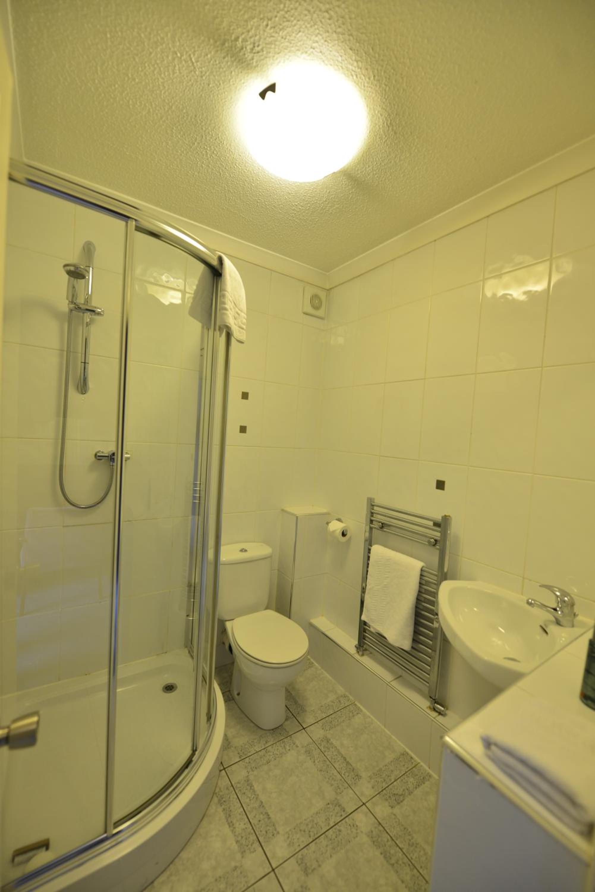 Room was dusty and dirty in corners and between the window and secondary glazing. No toilet roll holder of place to put things in the shower. Cooked breakfast was like warm.