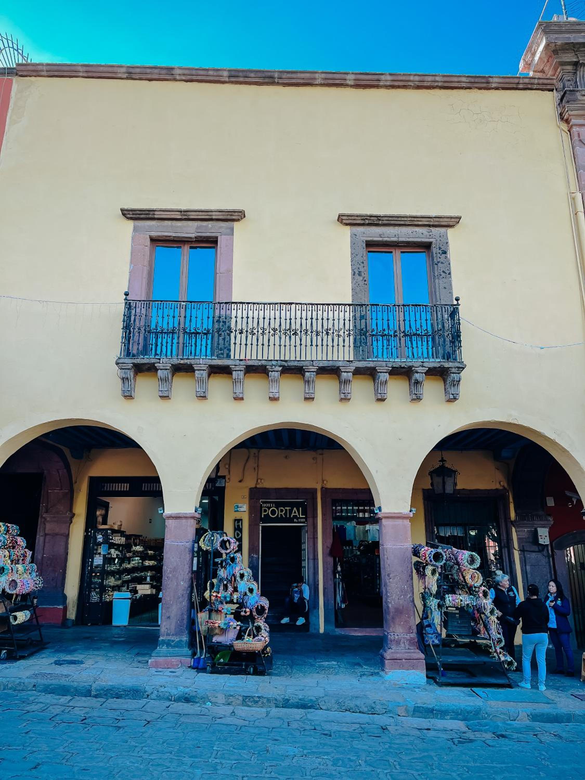 The hotel is right in the heart of San Miguel next to the cathedral of San Miguel Arcángel. But besides that the hotel is horrible. 1st there is no sing of the hotel name on the outside. It is label crisol not hotel del portal. 1500 pesos deposit if case you brake something. Room is super small. 5 power outlets total one didn’t work. Tv was not connected to cable or power. Hangers super tall if you are 6 feet tall they might work for you. I am 5’ 9” tall barely reached the hangers. Two bed room but tv wasn’t visible from the second bed. My windows were next to reception. So I was hable to hear everything till midnight and same thing after 7 am the next day. No wifi was provided to me at all. Bathroom was super small, when you sit on toilet your knees almost hit the wall. No space near sink to place toothbrush or lotion. Worst the bathroom door drag on the floor. So every time you need to use the bathroom at middle of night. I’ll wake up all my family member. Stay away from this hotel. Not worth it. Expedia says Junior suite. When you get there you get a standard room. Picture of property are not real at least talking about the Jr suite.