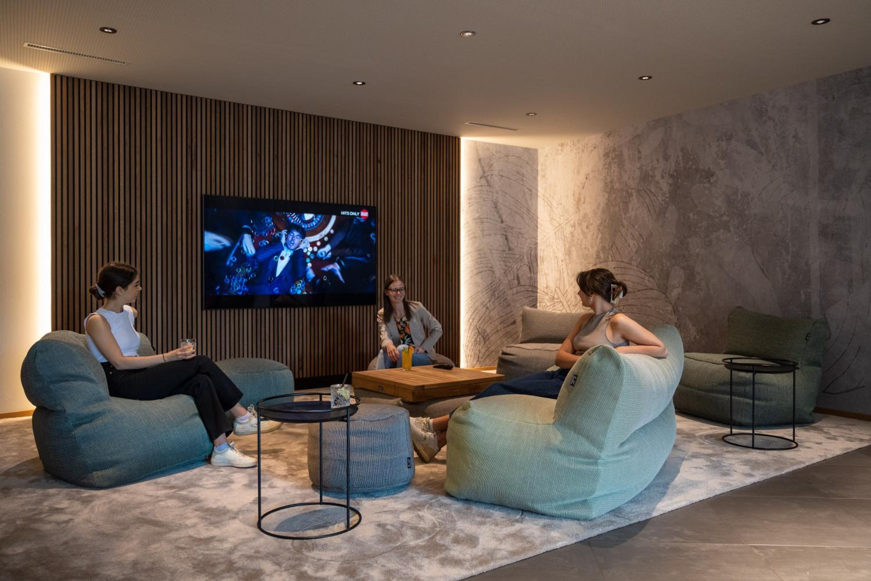 Wir hatten ein 3-Bett-Zimmer, wobei die Zimmer nur für zwei Personen ausgelegt sind. Dh es wird sehr klein und eng (wenn man noch Skiklamotten aufhängen muss noch kleiner). Man kann abends nirgendwo entspannt außerhalb des Zimmers sitzen, da die einzigen Plätze zum Restaurant gehören.