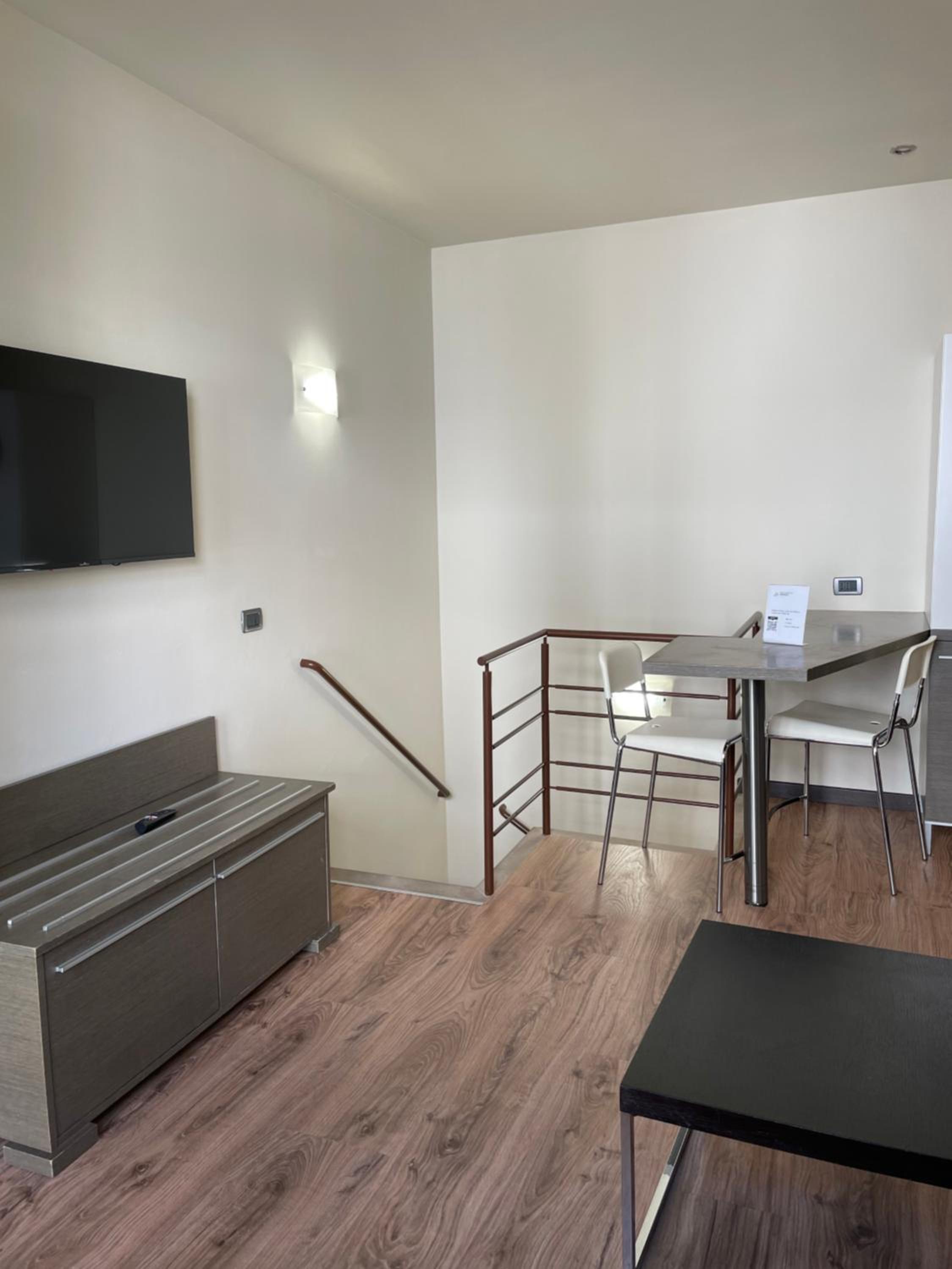 Appartamento su 2 livelli ma piano terra inutilizzabile per l'odore di muffa. Camera piccolissima con pareti macchiate da infiltrazioni. Si scende da un solo lato del letto. Zero coperta neanche nell'armadio. Per oscurare la finestra bisogna salire sul letto perché mancanti i bastoncini delle tende. Bagno pulito