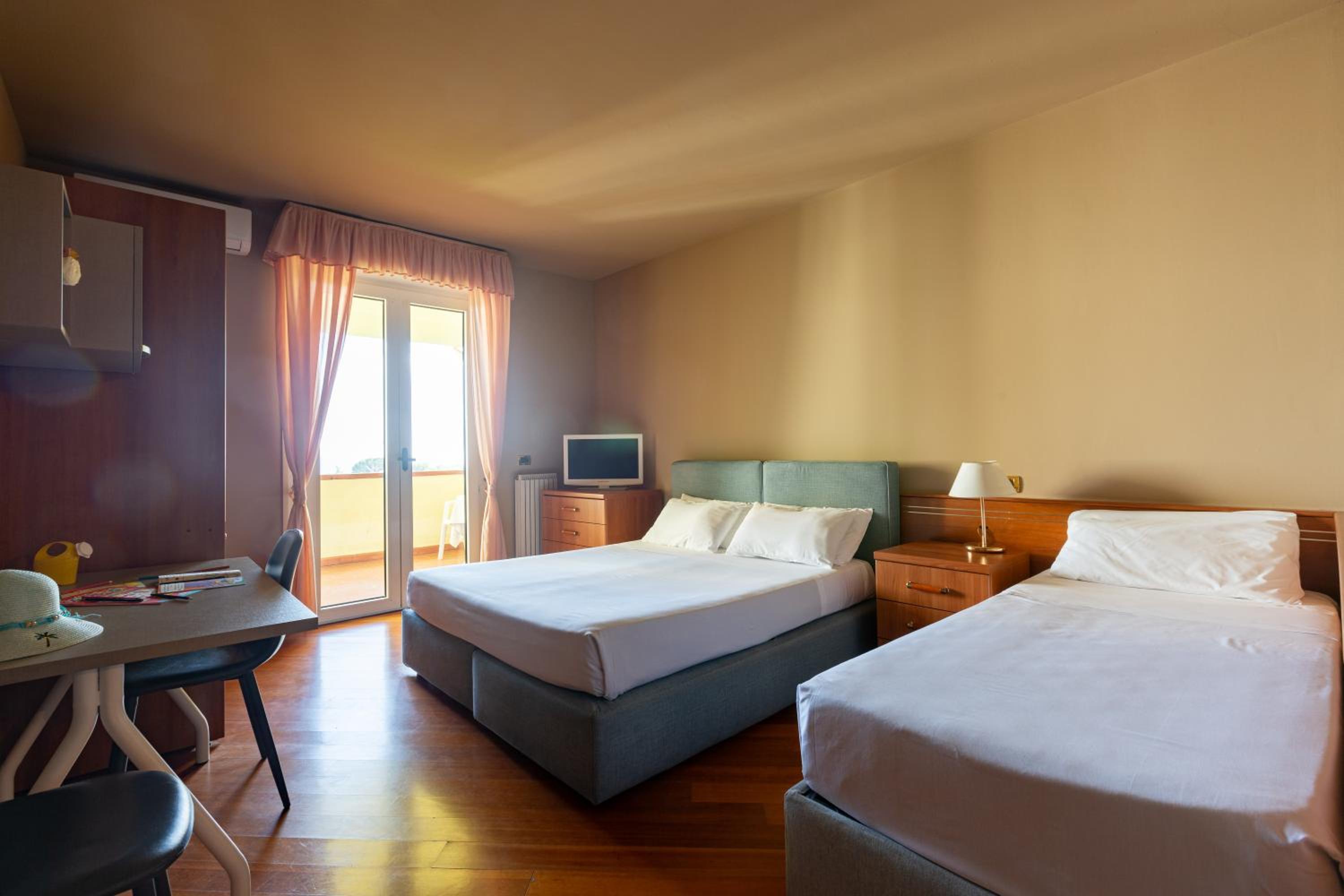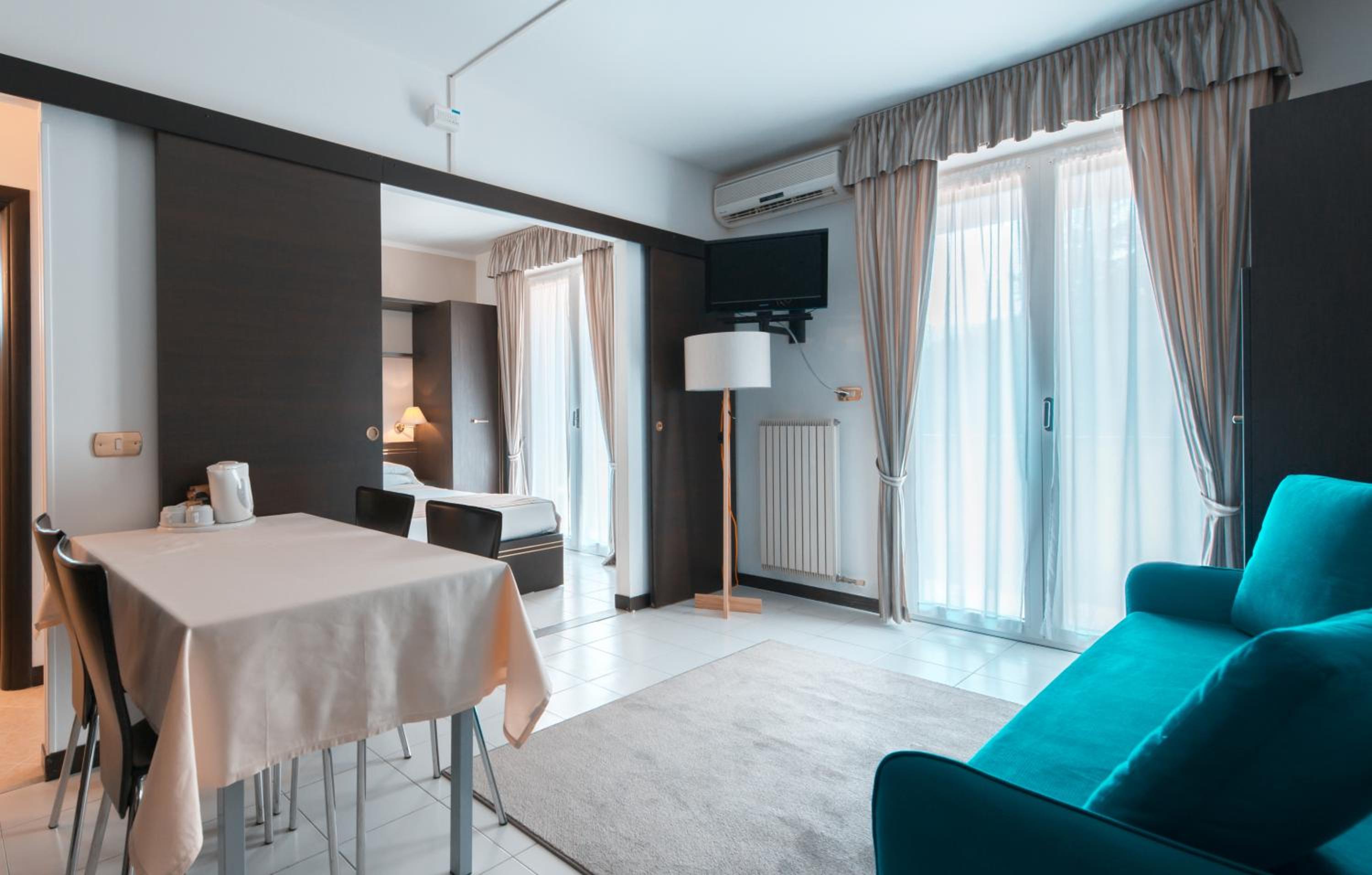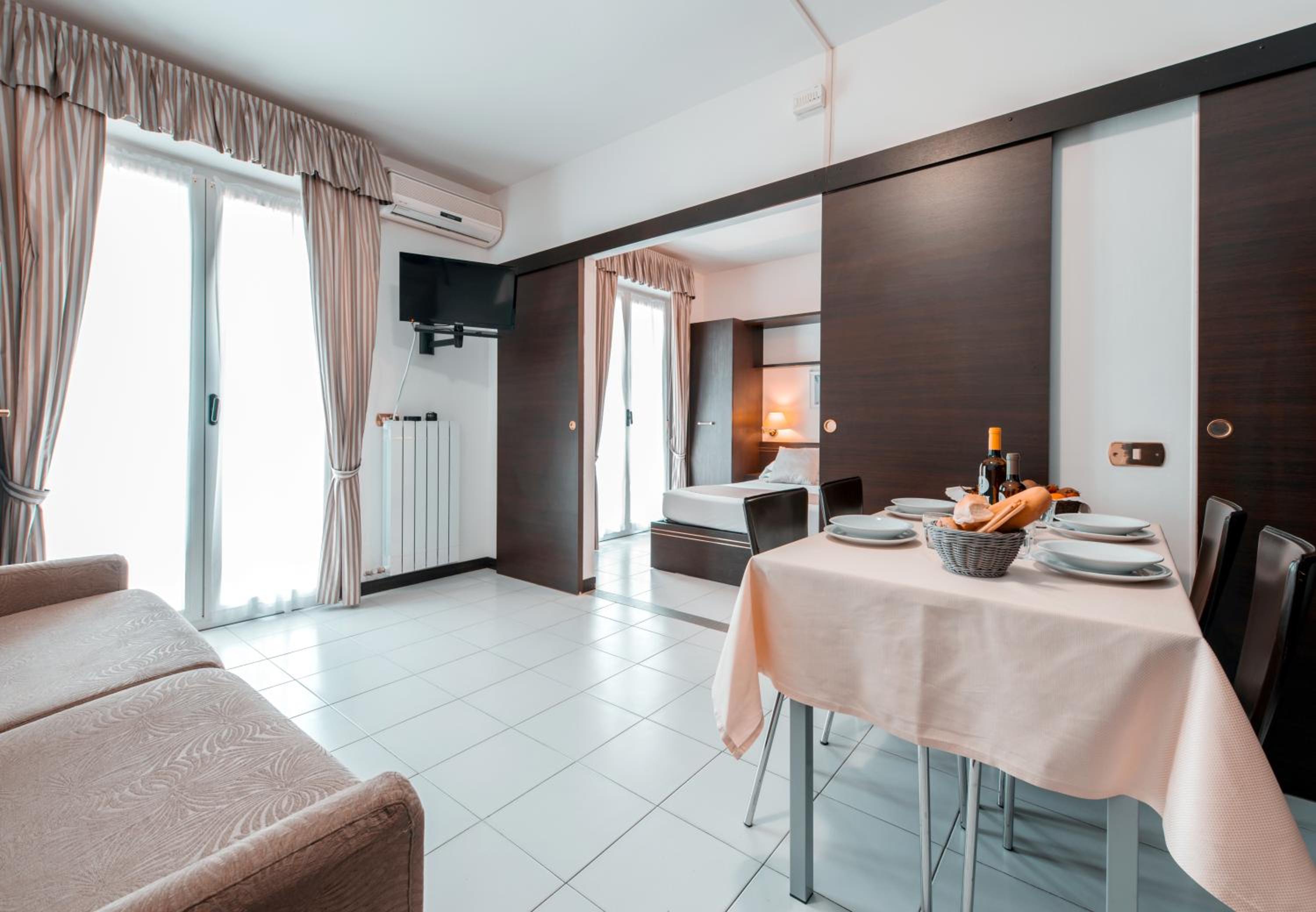 All rooms are air-conditioned with private balconies, TV, and kitchenettes in apartments. Free Wi-Fi is available in common areas.