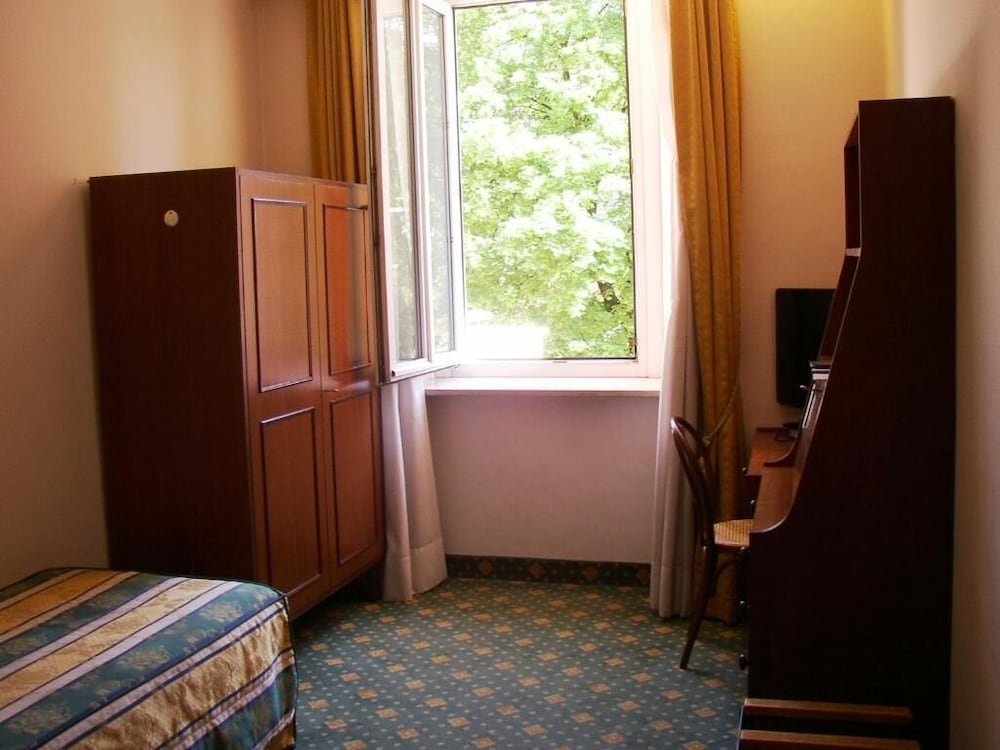 La camera un pò vetusta con letti non troppo comodi e con 2 letti 2 piazze alla francese troppo ingombranti per la dimensione della camera, con il riscaldamento bloccato che non si poteva regolare con temperatura troppo elevate tanto da dormire con la finestra aperte nel bagno si potrebbe cambiare lo spazzolino del WC.