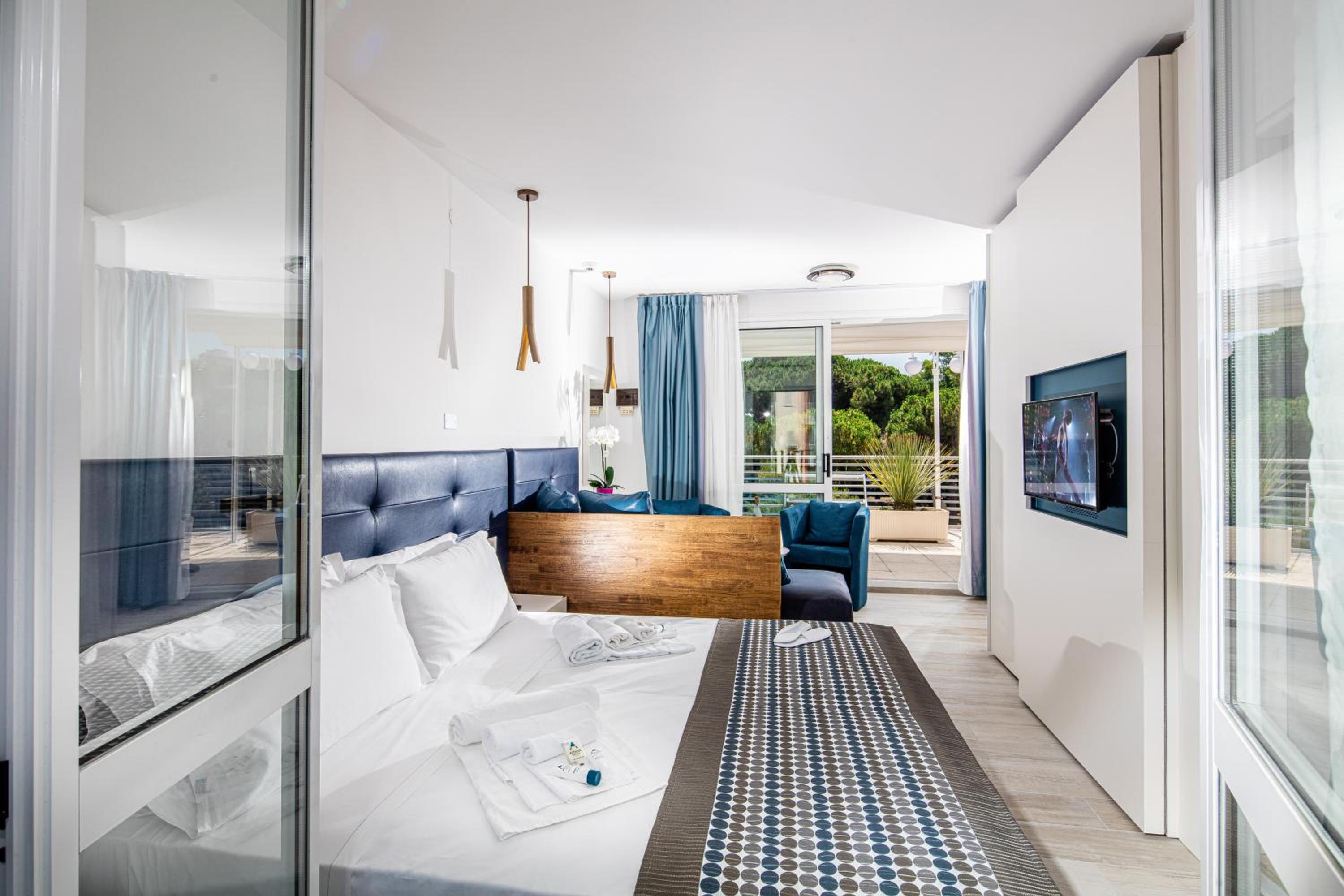 Guests can take advantage of free access to swimming pools and whirlpool, along with a private beach area including umbrellas and sun loungers. Complimentary courtesy bicycles and parking add convenience to your stay.