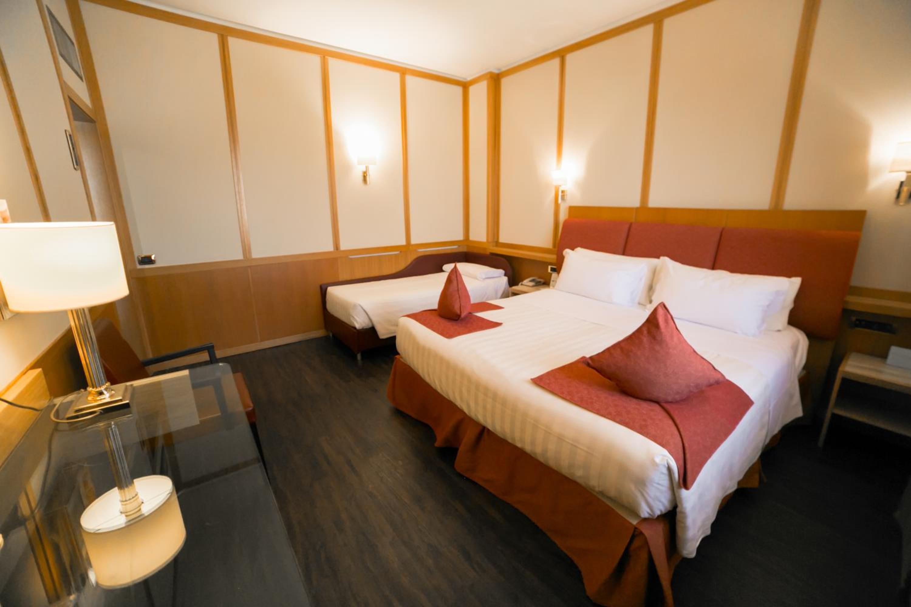 The spacious and air-conditioned rooms at the hotel feature a 40” LCD TV, warm colors, and light-wood furniture. Perfect for relaxation after a day of sightseeing in Rome.