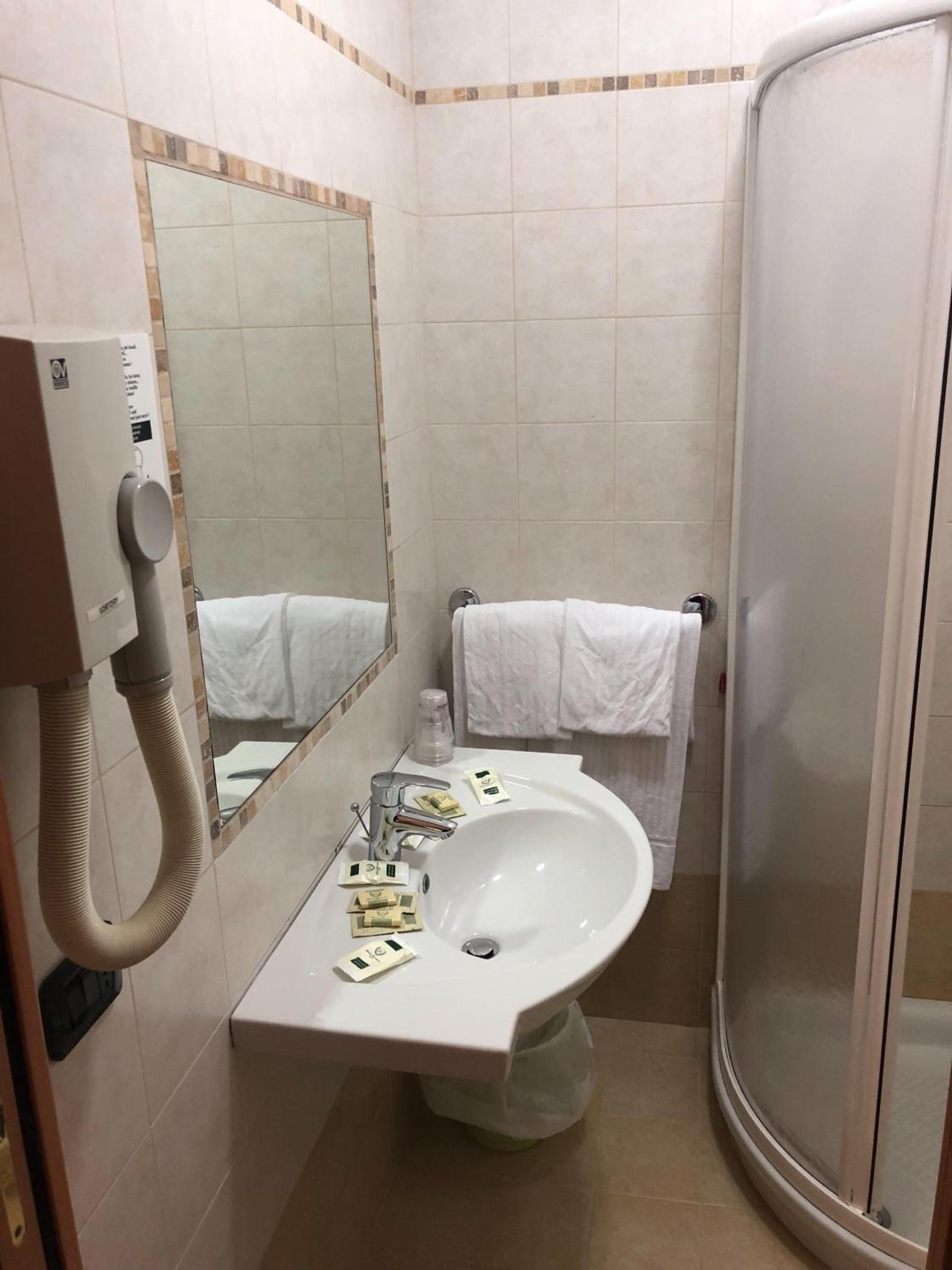 Good continental breakfast, perfect location for sightseeing of Ancient Rome and for transport to the airport, huge room 310 with all needed facilities.