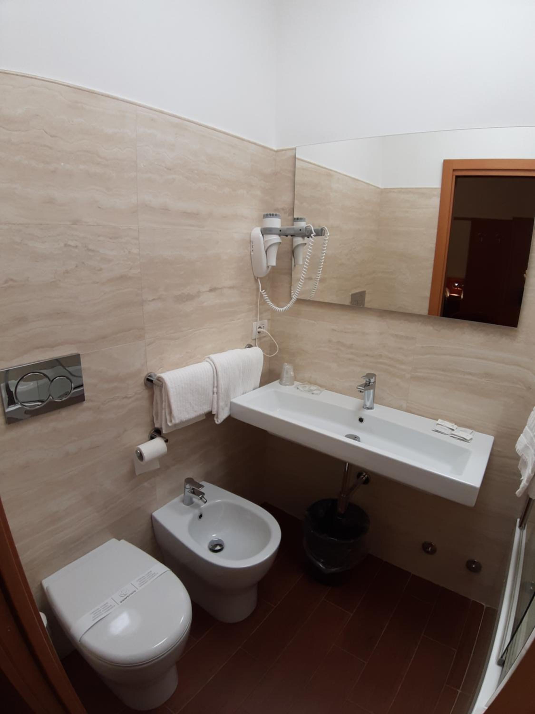 We stayed at Mariano twice during our trip to Italy in June 2025; two nights upon arrival and four nights at the end of our trip. The rooms were fine; clean, comfy beds, lots of hot water and AC, and an elevator. It's very close to the train/bus station, with several bus stops close by, too. There was no fridge in either of the rooms and no balconies. The rooms with doors facing the elevator have a nice view of the back side of the ancient aquarium building, but rooms at the ends, like 301, look onto a residential courtyard. Overall, perfect for our needs, but we would have appreciated a small refrigerator.