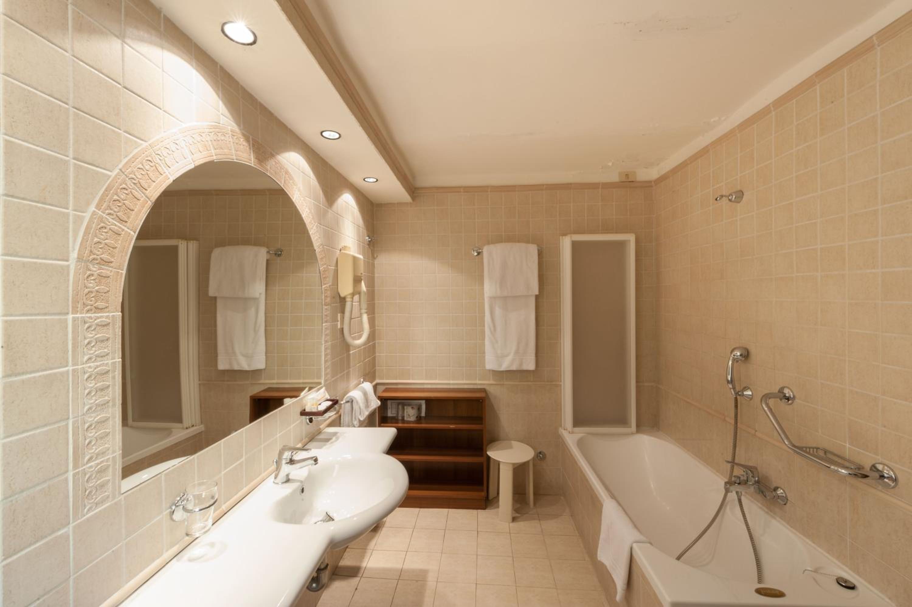 In camera si sentivano tutti i suoni del bagno della stanza vicina, compreso un insopportabile rumore dovuto forse all'aspiratore. La Tv era parzialmente non visibile perchè inserita in una nicchia dell'armadio. La porta della doccia, molto stretta, non consentirebbe l'uso ad una persona robusta.